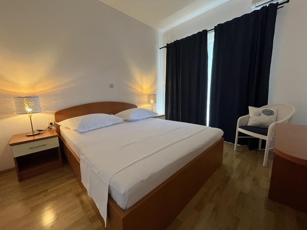 Vores ophold var virkelig behageligt, og vi havde det meget godt. Hver dag modtog vi friske håndklæder, viskestykker, svampe og affaldssække i tilstrækkelig mængde - så meget vi havde brug for. En særlig tak går til husholdersken Ljubica, som altid var tilgængelig og klar til at hjælpe. Hendes venlighed og vilje til at hjælpe gjorde vores ophold endnu mere behageligt. Renligheden var fremragende - virkelig verdensklasse! Den eneste lille bemærkning vil være, at møblerne og badeværelset virker en smule gammeldags, og madrassen er allerede en anelse hængende. En lille renovering ville være velkommen her. (Derfor har den ikke 5 stjerner) På trods af det kunne vi generelt set virkelig godt lide vores ophold. Stien til stranden er meget kort og kan nås til fods på få minutter, hvilket var en stor fordel for os. Vi kommer meget gerne igen!