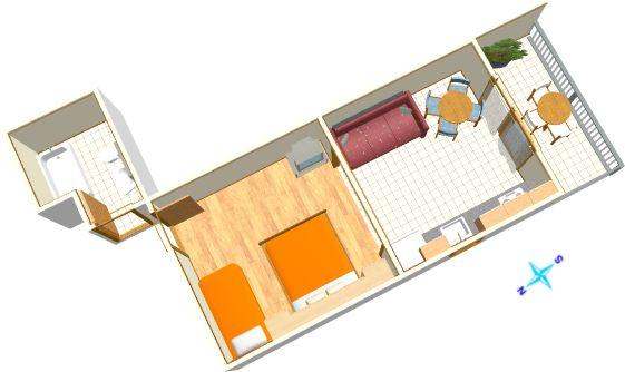 Ferielejlighed til tre personer med to ekstra senge (33 m2)