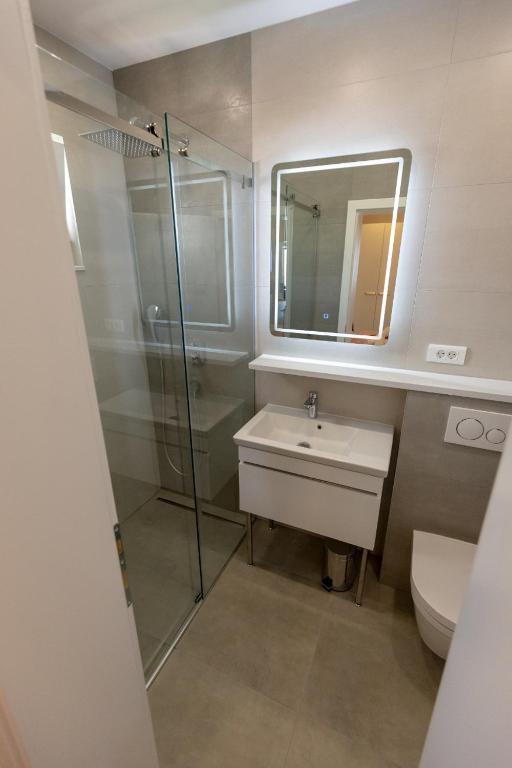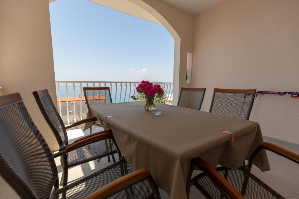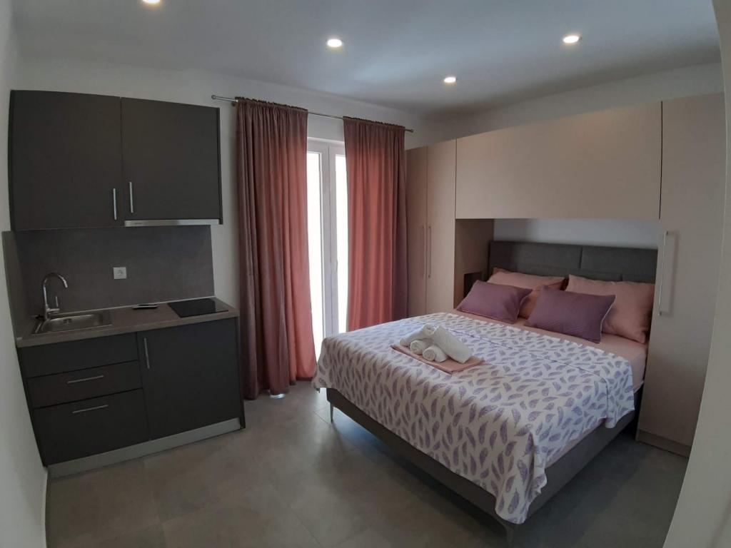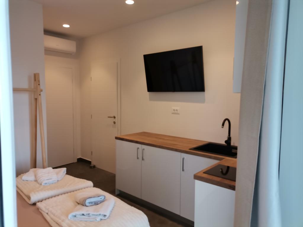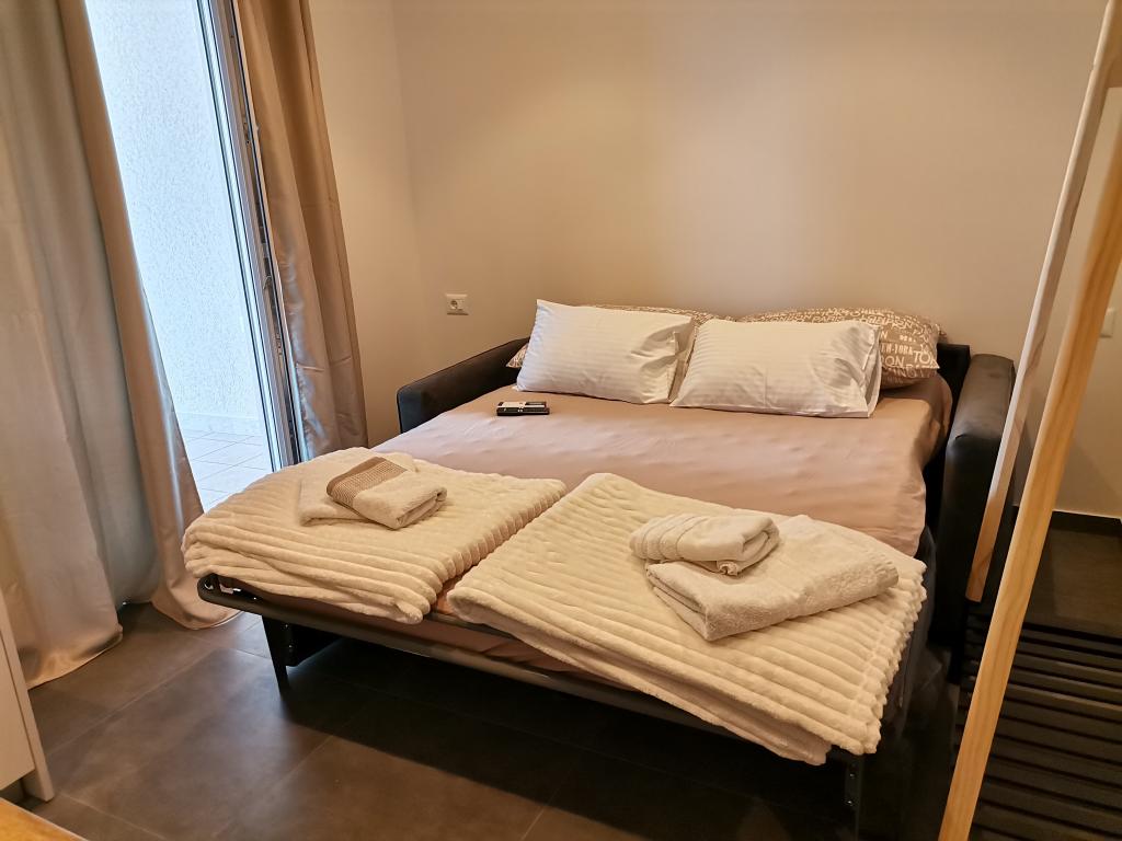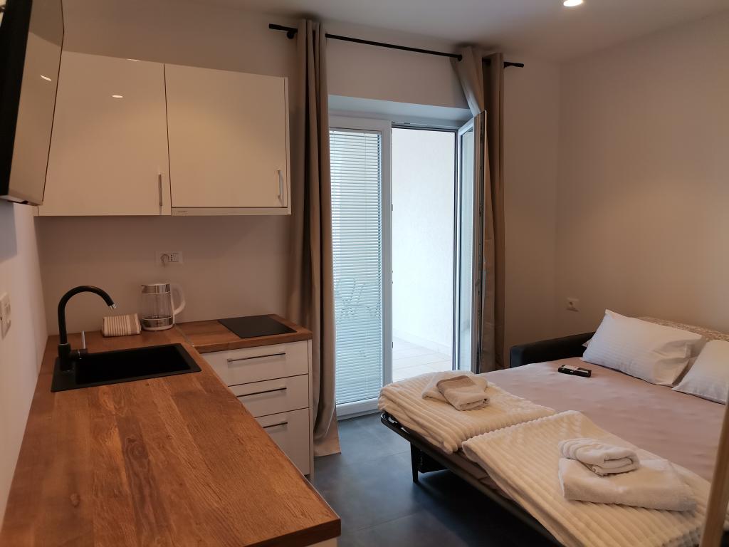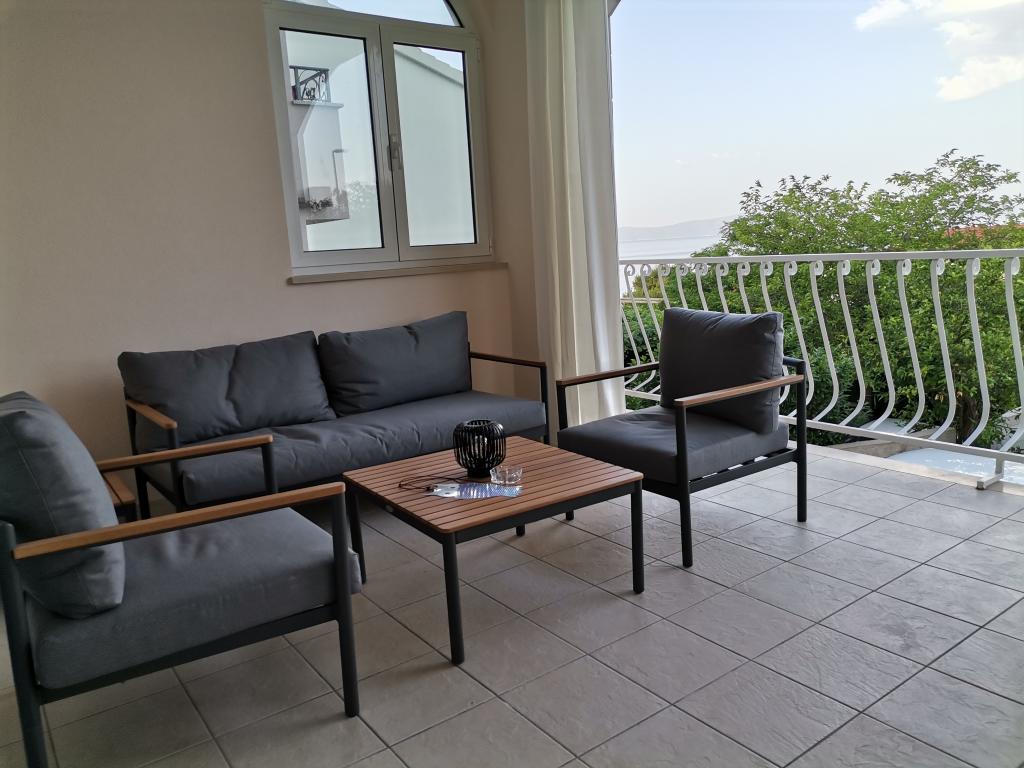 Helt og moderne udstyret lejlighed med stor terrasse, smuk udsigt. Anlægget ligger 30 meter fra havet og 5 minutter fra centrum. Vi, som unge værter, er altid til din rådighed for at tilbringe din ferie så smukt som muligt og bringe gode minder tilbage.