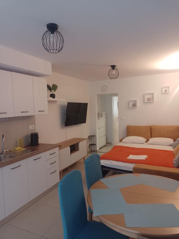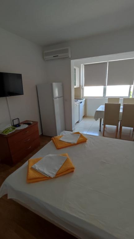 Apartments Mija ligger lige ved stranden og kun 200 meter fra Tucepi-marinaen. Der er også et supermarked, en hæveautomat og mange butikker og restauranter i nærheden. Vi tilbyder vores gæster indkvartering i 3 fuldt udstyrede lejligheder med sikker parkering placeret bag huset: -PARTEMENT 4 2 ligger på første sal i familiens hus og består af to værelser adskilt af en trappe, der løber gennem alle etager og badeværelser uden for værelserne. Begge værelser har aircondition og har internetadgang. Værelset på den sydlige side af huset har 2 dobbeltsenge og en stor terrasse med udsigt over stranden, mens rummet på nordsiden af huset har 1 dobbeltseng, køkken og spisestue. Parkering til 2 biler er til rådighed for denne lejlighed. -PARTEMENT 2 2 ligger i stueetagen og består af et soveværelse, badeværelse, køkken og terrasse med udsigt over stranden. Soveværelset har en dobbeltseng, og køkkenet har en ekstra seng til to personer. . Lejligheden har aircondition og har internetadgang. -A 2 2 er på 3. sal