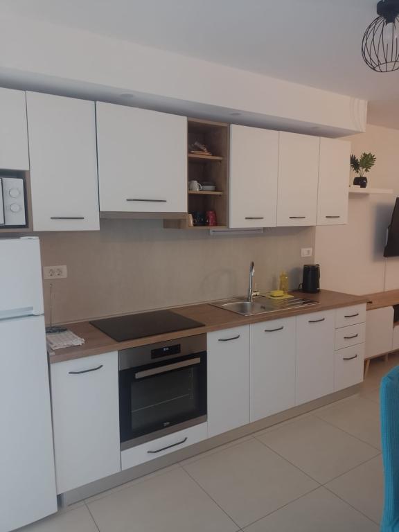 Jeg tilbragte 9 vidunderlige dage i denne lejlighed med min mand og to børn. Moderne, flot og veludstyret lejlighed. En smuk udsigt over bjergene fra både balkonen og køkkenet. Stærkt klimaanlæg i soveværelset og stuen. Rene håndklæder, som ejeren skiftede efter et par dage. Meget flot ejer, der taler godt engelsk. Hvis vi kun havde brug for noget, var det nok at spørge ejeren. Parkering på bagsiden af huset. På parkeringspladsen stod bilen den ene efter den anden, så hvis man ville gå et sted i bil, skulle man skifte sted, men det var heller ikke et problem. Havet lige ved hånden. Overalt tæt på bageriet og butikken. Masser af restauranter. Beliggenheden i et roligt og fredeligt sted. Som et farvel fik vi vores egen rødvin - meget god. Jeg anbefaler oprigtigt denne lejlighed