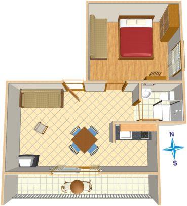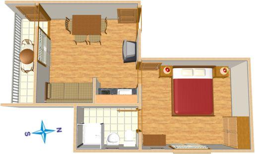 Ferielejlighed til to personer med ekstra seng (21 m2)