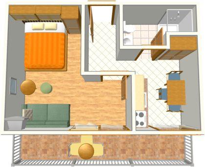 Ferielejligher til fire personer med ekstra seng (42 m2)