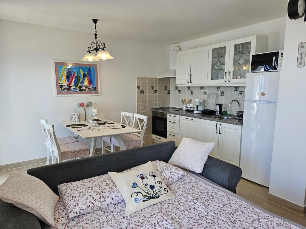 Meget flot lejlighed lige ved havet. Alt er der. Køkken, køleskab, hårtørrer, masser af håndklæder, gryder og pander,... Meget flot beliggenhed. Vi har været i Kroatien 13 gange, men dette er en meget flot region, beliggenhed og hus. Også en super flink og glat og behagelig værtinde.