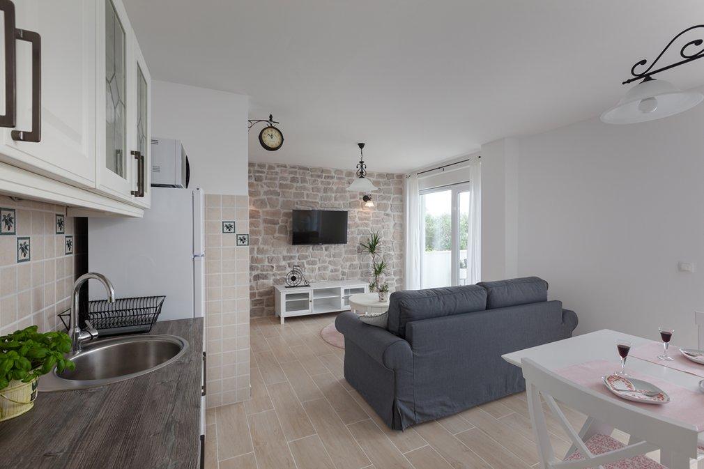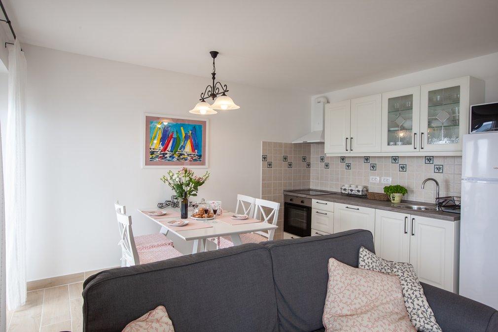 Lejlighed moderne udstyret med høj stil, med alt hvad du har brug for at føle dig hjemme, renlighed på niveauet, værterne venlige og tilgængelige for ethvert svar på dit spørgsmål, byder os velkommen med is til børn, hjalp med at bringe kufferter ... Lejlighed med smuk havudsigt, uforglemmelige solnedgange, et par skridt til stranden, meget behagelig atmosfære, hvile for sjælen, klart hav ... et sted, du vil vende tilbage til igen, igen og igen ...