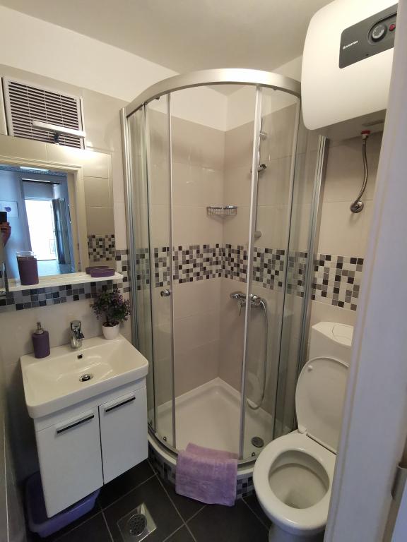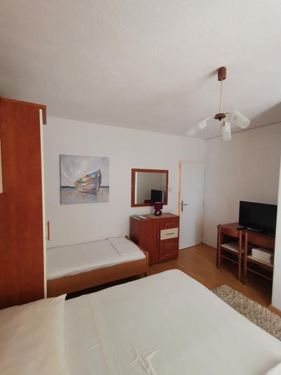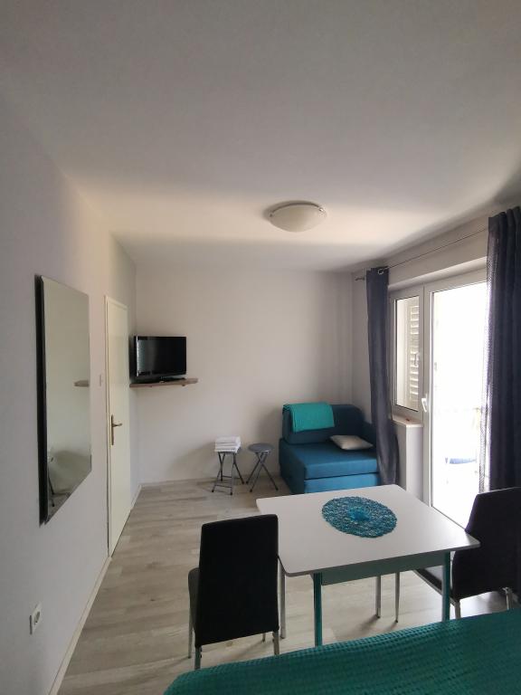 Vi var her på en 14 dages ferie, beliggenheden af selve lejligheden er faktisk i umiddelbar nærhed af havet, 3 minutter til stranden og mindre til havet butikker 3 minutter, samt bagerier, samt mange fremragende restauranter (jeg anbefaler personligt skridtet, den lille båd, gården, bistroen ivana) værtinden og hendes mand er meget venlige, altid ved hånden og klar til at hjælpe! Håndklæder skiftes hver 2. dag, lejligheden er meget ren, den har alt hvad du behøver! Det vigtigste for mig er den smukke udsigt over havet og morgenkaffen i fred. Tak for din venlighed, hjælp til at komme til dig og tilbage, vi ses næste år!!!!