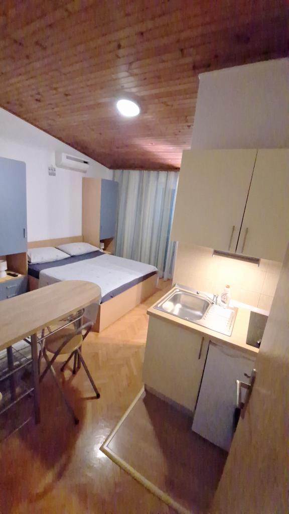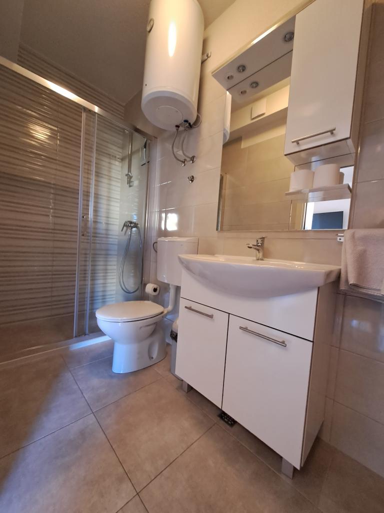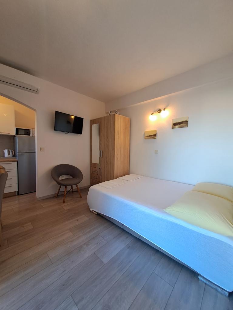 Turistskat er inkluderet i prisen.Værelse komfortabelt indrettet, moderne badeværelse, lille tekøkken, funktionel aircondition, WiFi-forbindelse, behageligt sidder på terrassen, huset er stille. Meget flot familie :) Ideel indkvartering til en fredelig ferie ved havet, til stranden omkring 5 minutter, stenstrand, rent hav, lang promenade.