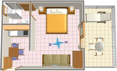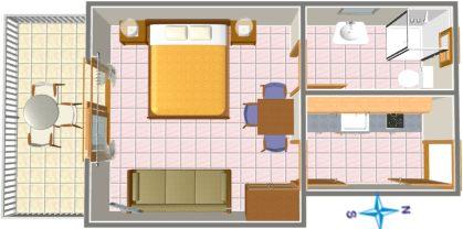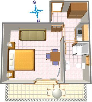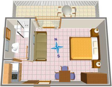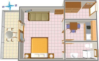 Ferielejlighed til to personer med to ekstra senge (29 m2)