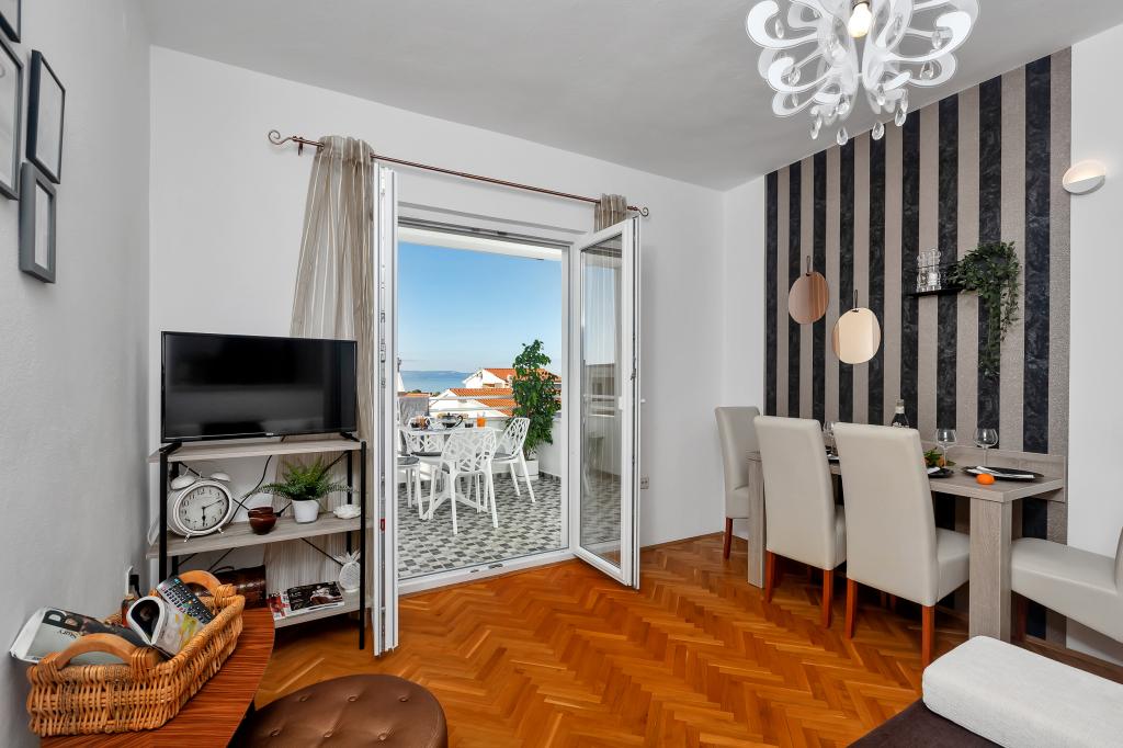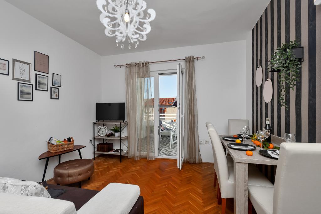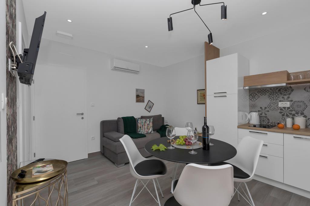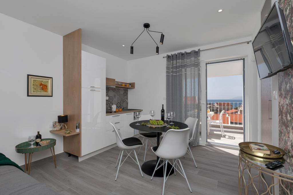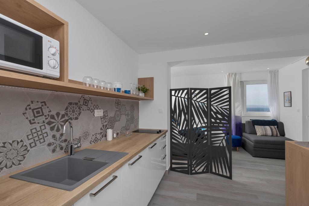 Helt ny og på alle måder udstyret lejlighed med alt hvad du behøver for en behagelig ferie. Sengen er meget behagelig, badeværelset er rummeligt, køkkenet har alt hvad du behøver for at arrangere et måltid. Terrassen er smuk med en fantastisk udsigt over havet og resten af stedet. I soveværelset er sengen placeret, så du kan se de smukke solopgange og solnedgange fra den. Bygningen er stille og fredelig. Parkering er tilstrækkelig til uhindret ind- og udstigning. Den største ros for renligheden, som er over gennemsnittet. Alt var fejlfrit. Viskovici er en høflig, hjælpsom, altid tilgængelig og varm familie. Vi anbefaler denne indkvartering og disse vidunderlige mennesker til alle.