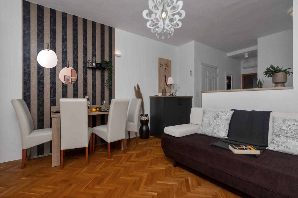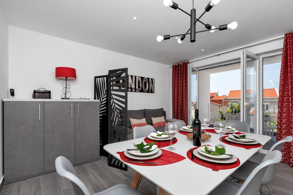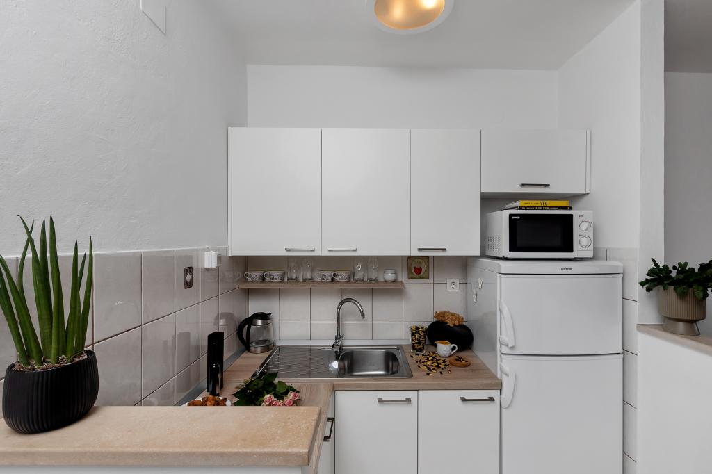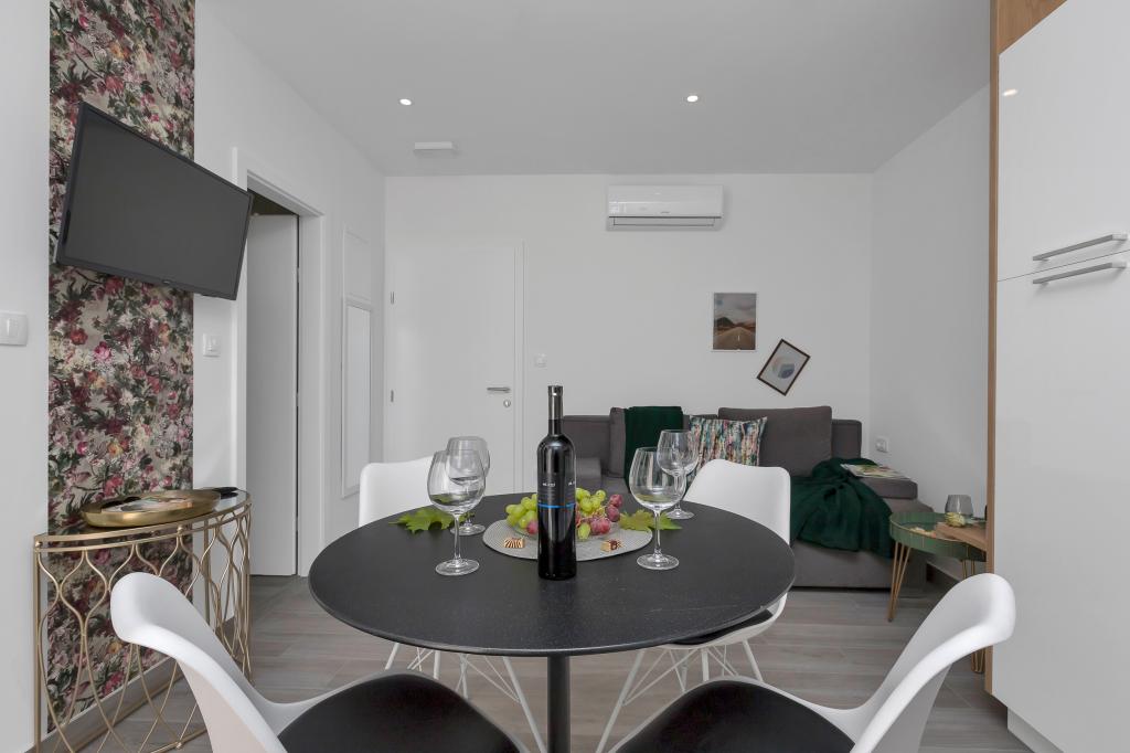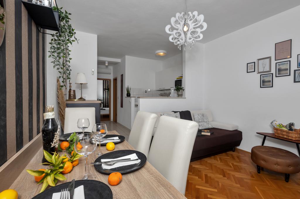 Helt ny og på alle måder udstyret lejlighed med alt hvad du behøver for en behagelig ferie. Sengen er meget behagelig, badeværelset er rummeligt, køkkenet har alt hvad du behøver for at arrangere et måltid. Terrassen er smuk med en fantastisk udsigt over havet og resten af stedet. I soveværelset er sengen placeret, så du kan se de smukke solopgange og solnedgange fra den. Bygningen er stille og fredelig. Parkering er tilstrækkelig til uhindret ind- og udstigning. Den største ros for renligheden, som er over gennemsnittet. Alt var fejlfrit. Viskovici er en høflig, hjælpsom, altid tilgængelig og varm familie. Vi anbefaler denne indkvartering og disse vidunderlige mennesker til alle.