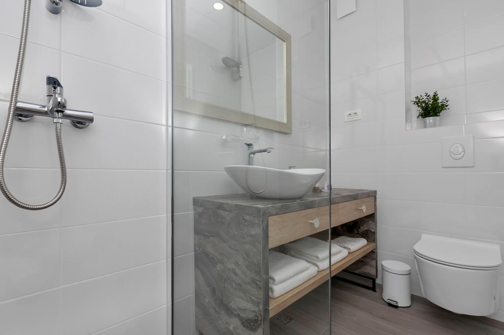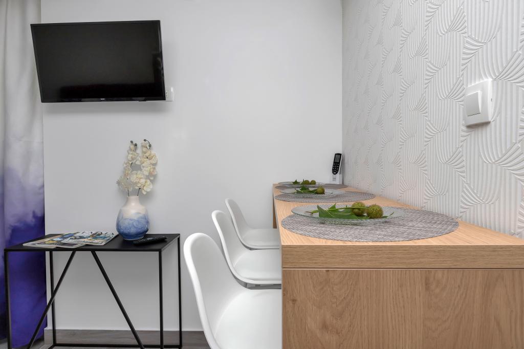 Meget flot og moderne bygning, rummet er også pænt og moderne, alt er fuldt funktionelt og dufter smukt og friskt. Klimaanlægget afkøler smukt, WiFi har et godt signal, køkken og helt rigtigt, der mangler intet. Ud over alt dette, den meget behagelige og smilende ejer fru Tanja, er der ikke noget at klage over, jeg kan varmt anbefale det til alle.
