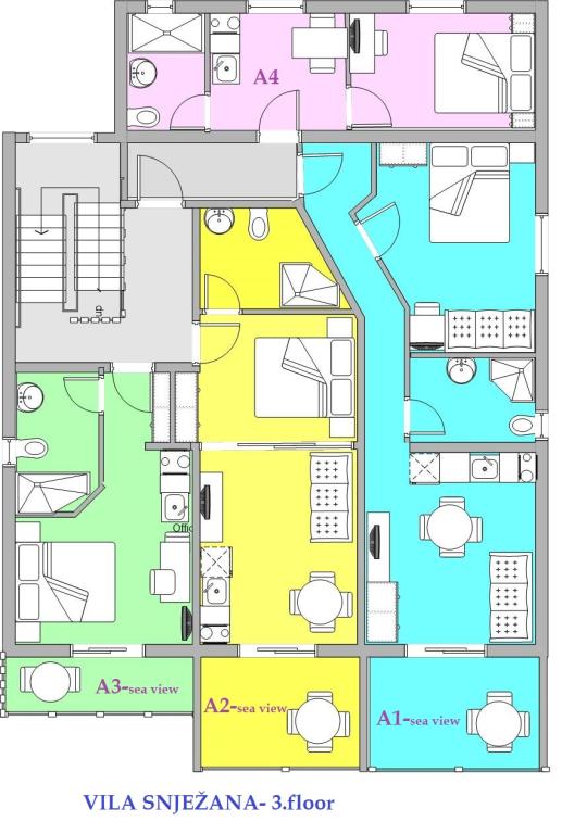 Snow Villa tilbyder dig moderne møblerede lejligheder og studiolejligheder til 2, 3, 4 og 5 personer. Alle lejligheder har aircondition, CTV, signal til WIFI og alt nødvendigt køkken og badeværelse udstyr. Inden for villaen Snježana er der parkering for alle vores gæster i gården af huset i århundreder oliventræer. Vi tilbyder også to parkeringspladser til vores gæster.