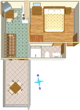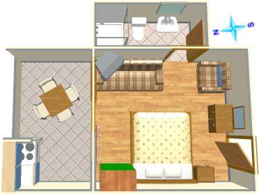 Ferielejlighed til to personer med ekstra seng (23 m2)