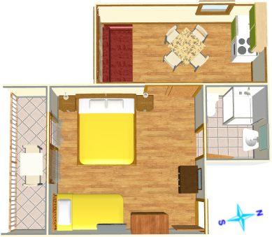 Ferielejlighed til to personer med to ekstra senge (25 m2)