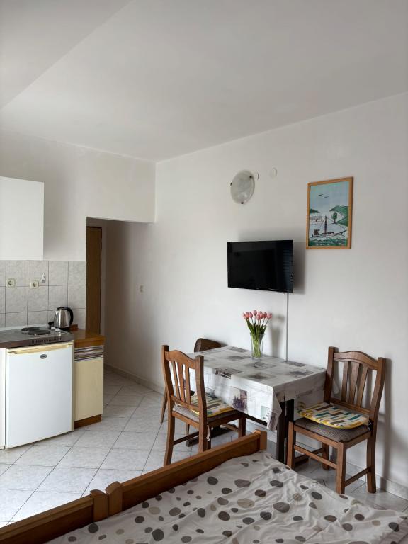 Lejligheden, ren, komfortabel seng, udstyret med alt (mikrobølgeovn, elkedel, vaskemaskine), imødekommende som ejeren Dea. Der er en veranda med en smuk udsigt, ideel til morgenmad.