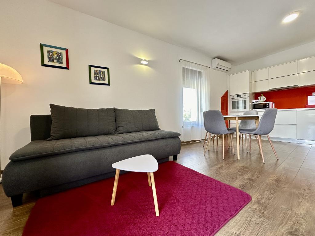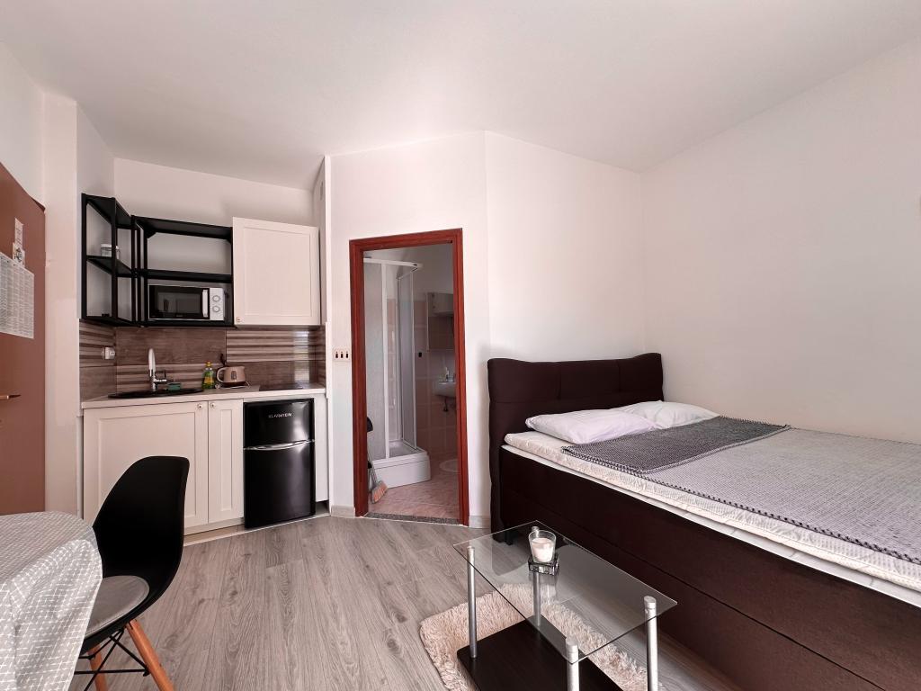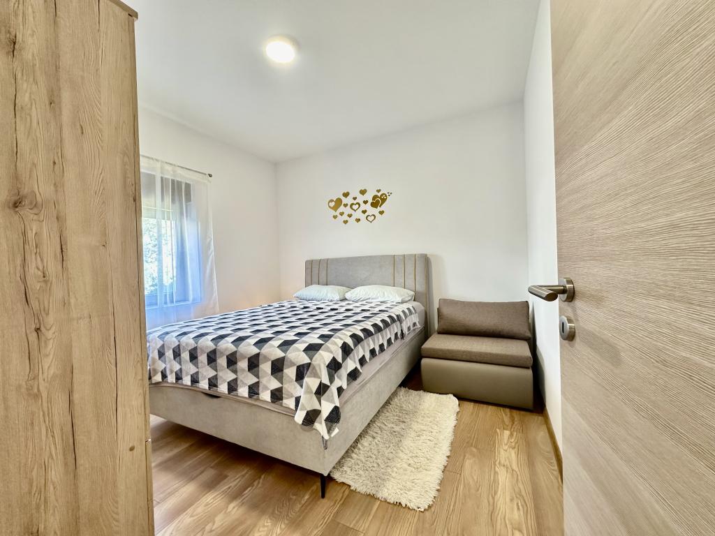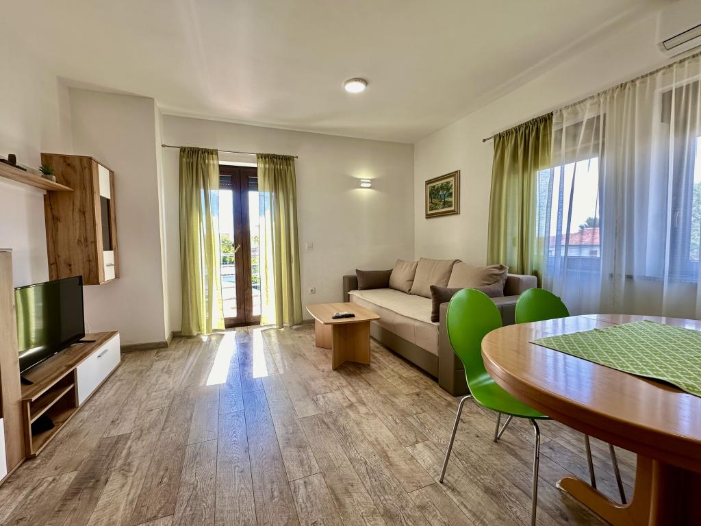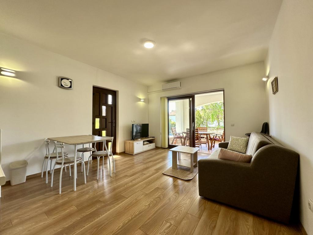 Vores lejligheder ligger i Turanj, kun 2 minutters gang fra den første strand. Der er ikke meget naturlig skygge på denne strand, men du kan finde forfriskning kun få skridt væk. Vores hus har 4 etværelses lejligheder og 1 studie. Den store gård tilbyder masser af plads til parkering af biler og børn at lege. I betragtning af de 5 lejligheder i huset, kan du forvente af og til at møde og se andre gæster, hvilket er ganske normalt. Nogle lejligheder har fælles indgang. Alle lejligheder har et separat soveværelse (undtagen studielejligheder), køkken, opholdsstue, badeværelse, balkon/terrasse, aircondition, WiFi, sengetøj, håndklæder. Der er en parkeringsplads til hver lejlighed i bygningen. Nogle lejligheder har vaskemaskine, mens de, der ikke har, kan benytte vaskemaskinen i bygningen efter anmodning. Send venligst forespørgsler udelukkende via kontaktformularen. Prislisten er opdateret og korrekt.