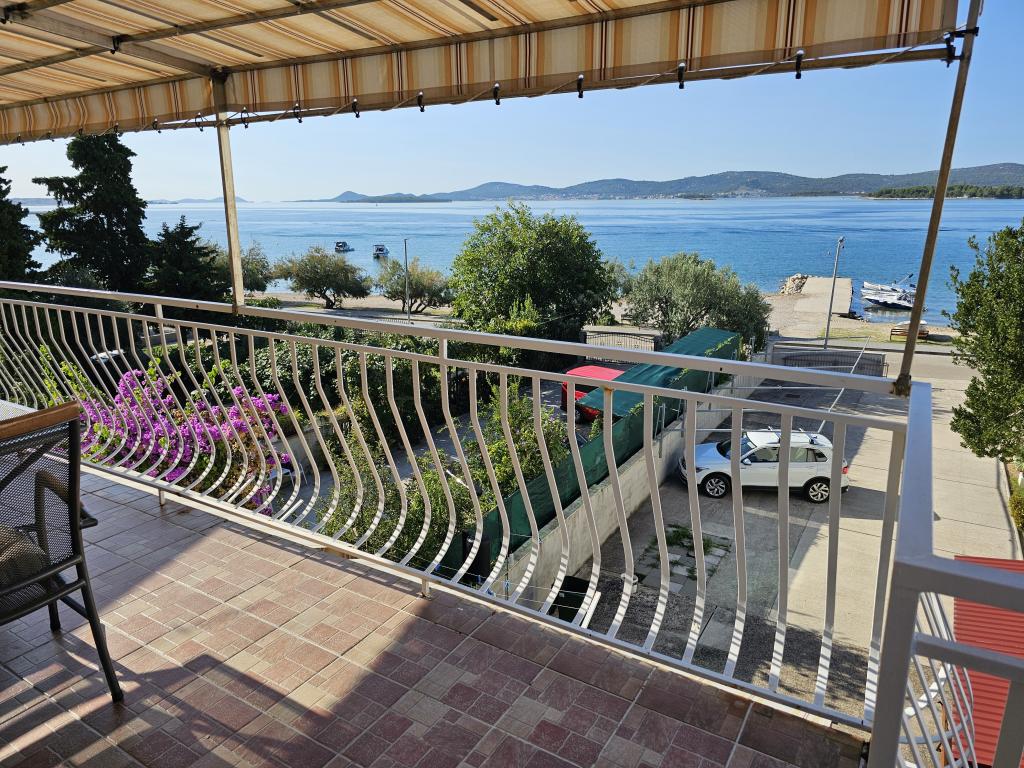Lejlighederne Hodak ligger på promenaden mellem Sveti Filip i Jakov og Turanj, lige ved havet. Inde i gården er der en rummelig gratis parkeringsplads til biler, en grill og et udendørs bruser, der kan benyttes efter gæstens anmodning. Hver lejlighed har adgang via en separat indgang på ydersiden af trappen og har to soveværelser med dobbeltsenge, et badeværelse, et køkken og en stue. Hver lejlighed har aircondition, et tv og gratis WiFi. Den første lejlighed ligger på første sal i huset med en stor terrasse, og den anden på anden sal med en overdækket terrasse med en smuk udsigt over havet og de nærliggende øer. Den arrangerede strand ligger lige foran bygningens gårdhave, den er rolig og velegnet til børn. Gæsterne har 2 bøjer til fortøjning af speedbåde til rådighed. Lejlighederne udlejes fra 01.06. til 30.09.