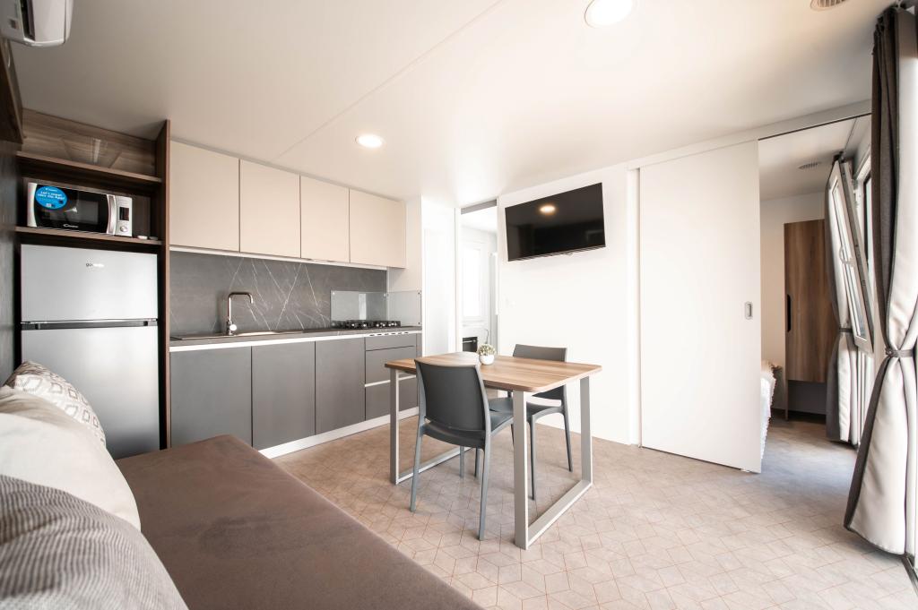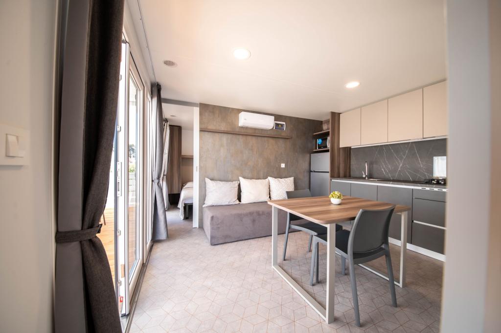 Vi boede i et mobilhome for første gang, og det var virkelig fantastisk. Lejren er lille, meget stille. Det er velegnet til familier med små børn. Stranden er indrettet, havet er lavt, så børn kan lege fredeligt indeni. Der er også liggestole og en parasol på stranden. De har også to pedalbåde, som du kan bruge, når de er gratis. Lejren har også cykler til gæster og en trampolin til børn. Sommerhuset var rent og veludstyret. Det er i skyggen hele dagen. Ejeren er yderst venlig, hjælpsom og kontrollerer dagligt, om gæsterne har brug for noget (fra nye rene håndklæder, sengelinned ..) Vi vil helt sikkert gentage ferien i denne lejr.