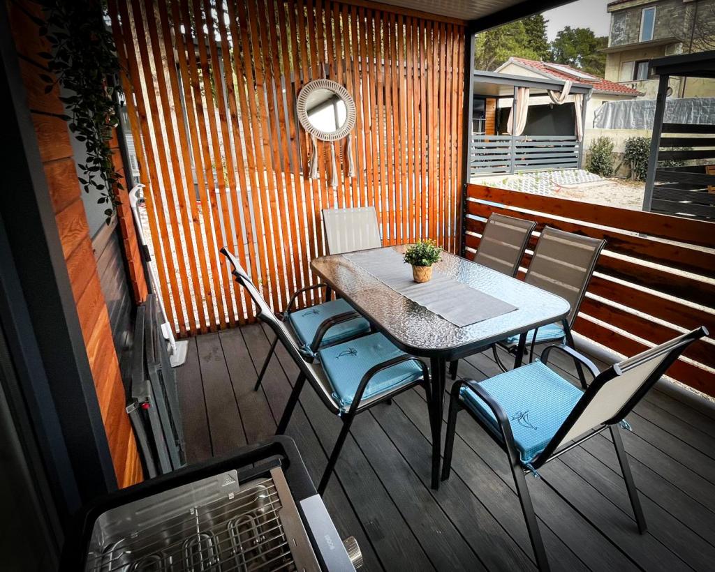 Vores mobilhomes i Marea er designet til at gøre din ferie ubekymret, komfortabel og fyldt med afslapningsøjeblikke. Hvert hjem er omhyggeligt indrettet og fuldt udstyret til et behageligt ophold for familier eller par, der søger privatliv, fred og alle bekvemmelighederne i et moderne hjem ved havet. De ligger på en lille, indhegnet familiecampingplads kun 30 meter fra stranden, i den rolige by Turanj, omgivet af grønne områder og en middelhavsatmosfære. Udstyr og faciliteter i begge hjem: To soveværelser med dobbeltsenge Fuldt udstyret køkken (induktion, opvaskemaskine, stort køleskab) Stue: sovesofa, smart-tv, Wi-Fi (Starlink), aircondition Badeværelse: bruser, håndklæder, hårtørrer Rummelig terrasse med møbler og liggestole Sikker parkering (Marea 1 - Plads nummer 3 | Marea 2 - Plads nummer 5) Velkomstgave Hjemmene har aircondition og er tilgængelige hele året rundt, hvilket gør dem til et ideelt valg til en sommerferie, men også til en rolig vinterferie ved havet.
