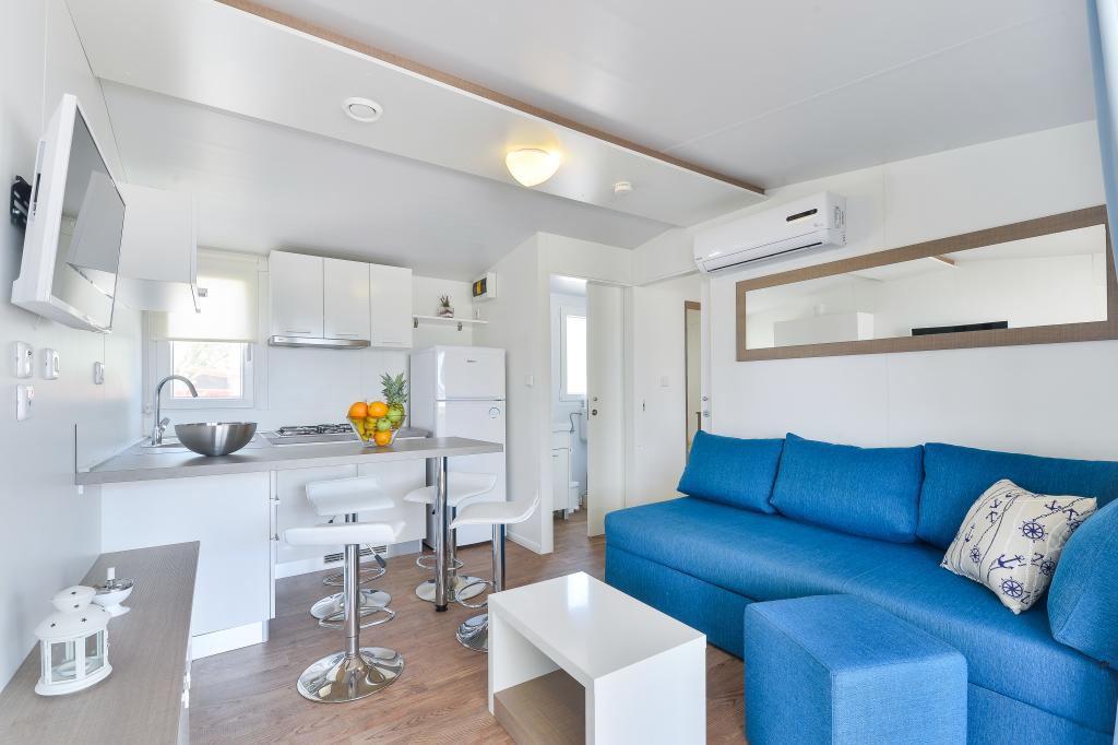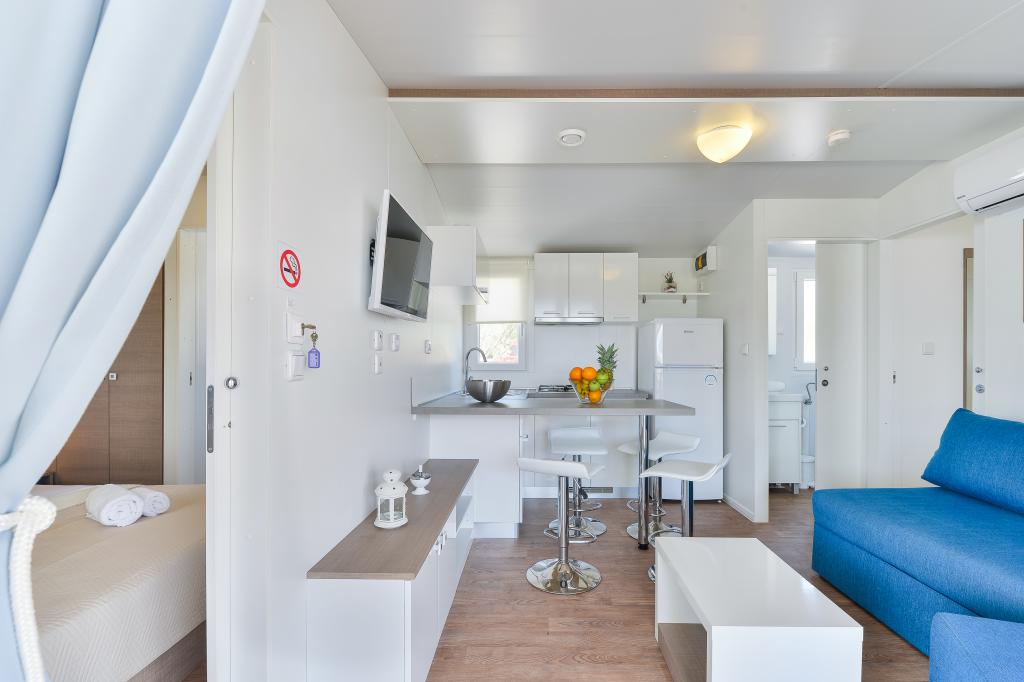 Fuldt og moderne udstyret mobilhome 40 m fra havet i Turanj. Mobilhjemmet ligger i en lille lejr i en rolig del af Turanj ved havet. Huset er fuldt udstyret og har to soveværelser, to badeværelser, stor terrasse, grill, internet.