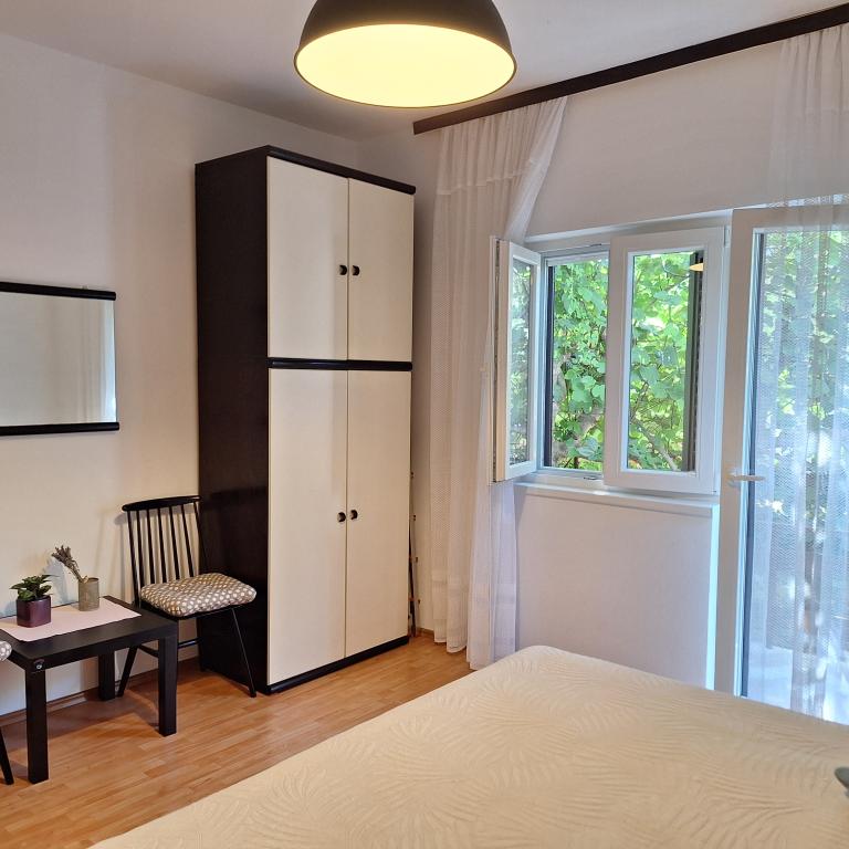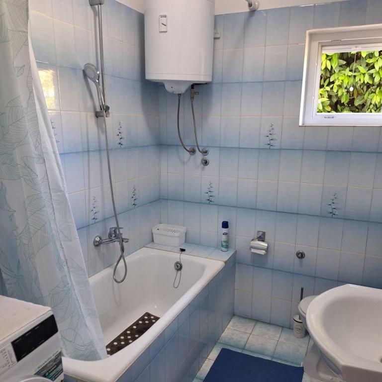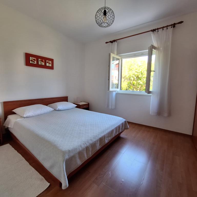 Vi tilbyder leje af et helt hus på 100 m² med en privat have på 600 m² - et ideelt sted for en afslappet og fredelig ferie! Fordele: fuldstændig privatliv, kun 2 minutters gang til stranden, rummelig have fuld af skygge og grønt, nyd på terrassen eller i haven med grill, sikker parkering til din bil. Her finder du det perfekte hjørne til afslapning og naturens nydelse, væk fra byens støj. Huset består af 2 soveværelser, en stor stue, et køkken med spiseplads og et badeværelse. Afstande: Zadar - 23 km Biograd - 4 km Šibenik - 50 km Tæt på nationalparker: Krka, Kornati, Paklenica.