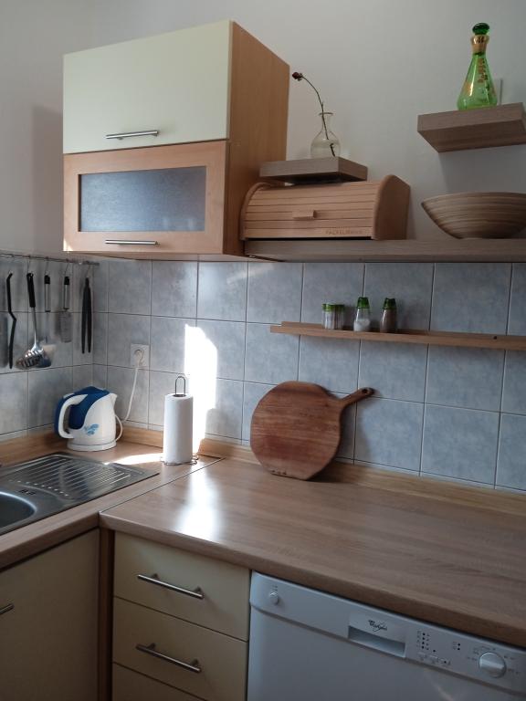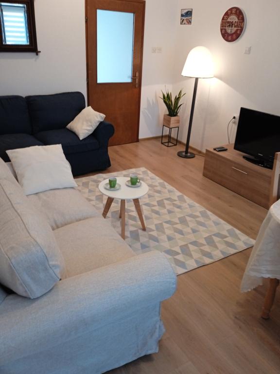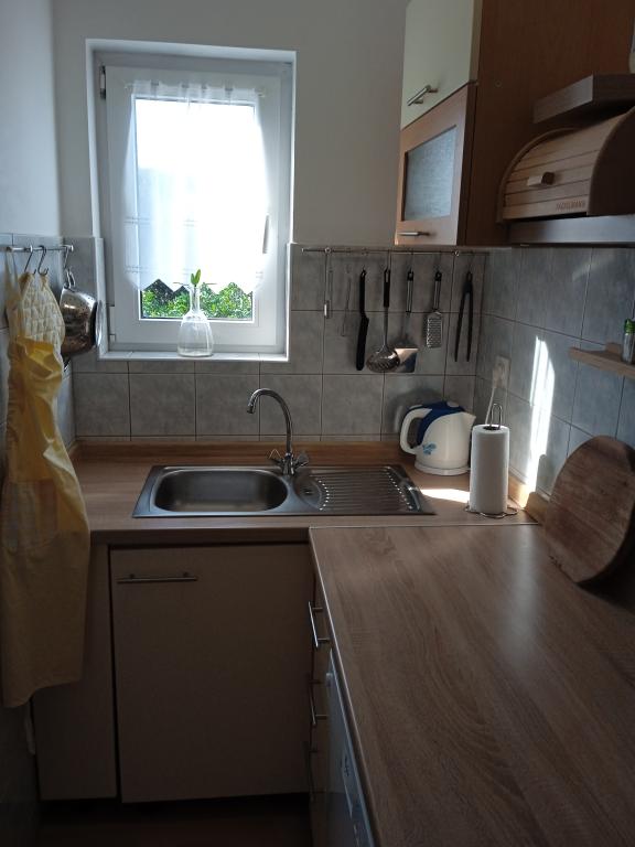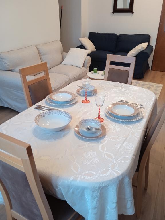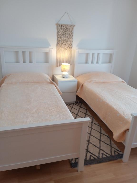 Lejligheden er beliggende på gulvet i huset. Det har to soveværelser med dobbeltsenge. Hvert værelse har en balkon. Også i lejlighedens stue, køkken og en anden balkon. I stueetagen er sommer køkken og terrasse og sort køkken med pejs, der bruges sammen med værterne. I gården er en parkeringsplads. Lejligheden har en separat indgang. Gratis wi-fi.