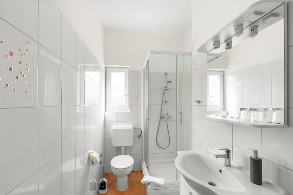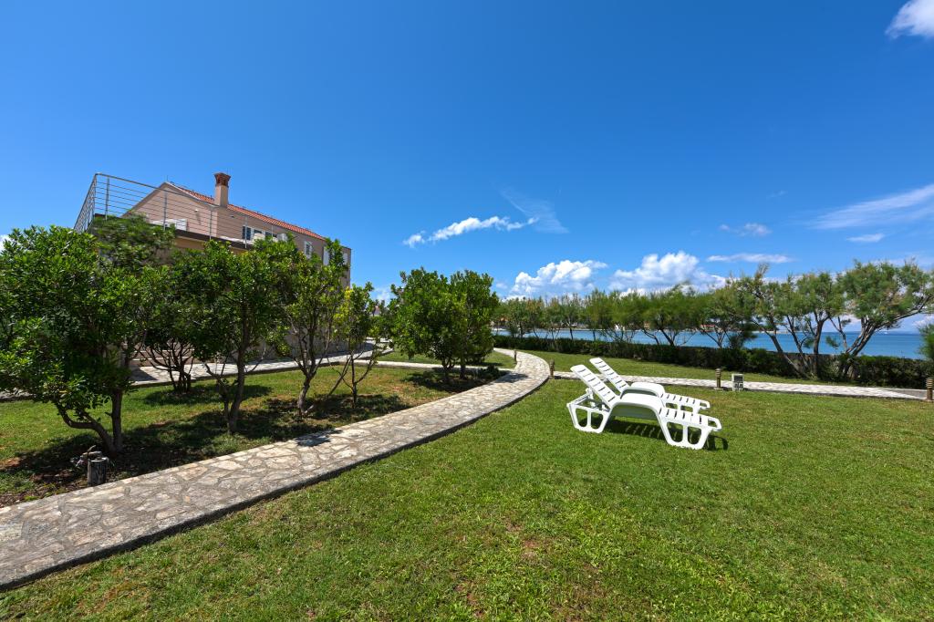 Lejlighederne ligger lige ved havet i fredelige og venlige landlige omgivelser. Hver lejlighed har en stor terrasse med havudsigt. De er omgivet af en anlagt middelhavshave, der er velegnet til leg for børn. Der er liggestole og fælles grill i haven. Hver lejlighed har 2 badeværelser. I nærheden, 5 minutters gang væk, ligger centrum, hvor der er et marked med produkter fra lokale gårde samt butikker og restauranter. Akut lægehjælp er tilgængelig 24/7. Stranden lige foran lejligheden er stenet, og der er flere strande i kort afstand, hvor der også er en sandstrand. Ankomst i bil: motorvejen fører direkte til færgehavnen i Gaženica. Derefter går du ombord på færgen til Preko. Om sommeren er køerne hyppige og kører mindst hver time. Fra Preko færgehavn, tag øens hovedvej for at nå byen Ugljan, som ligger 10 km væk. Ankomst med fly: Fra Zadar lufthavn med bus eller taxa på 15 minutter. Du ankommer direkte til færgehavnen i Gaženica, hvor du går ombord på færgen til Preko.