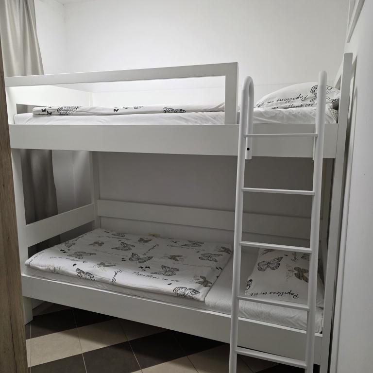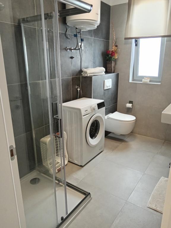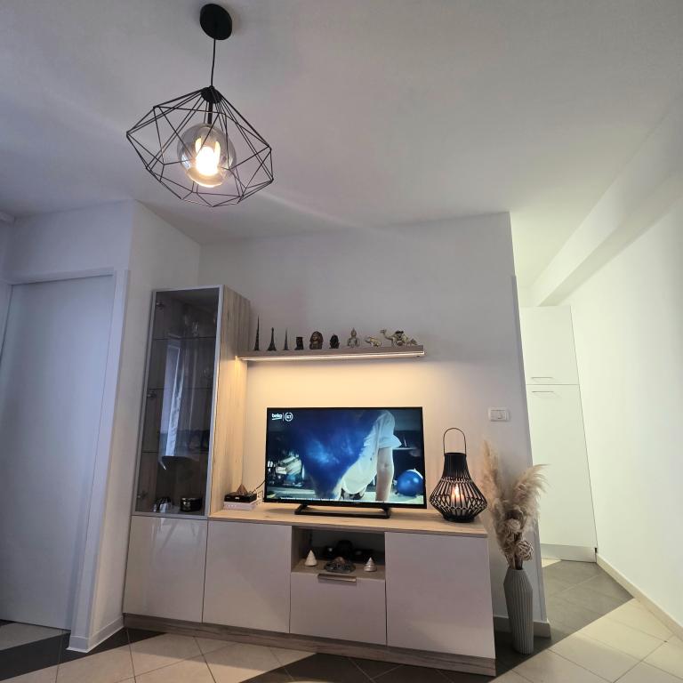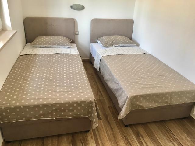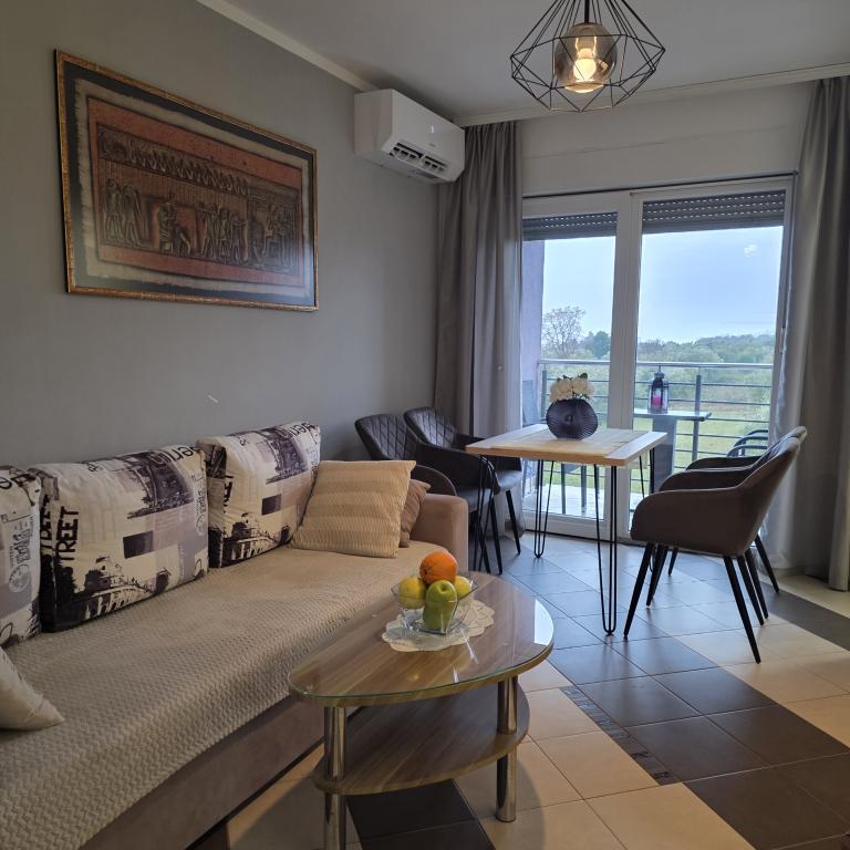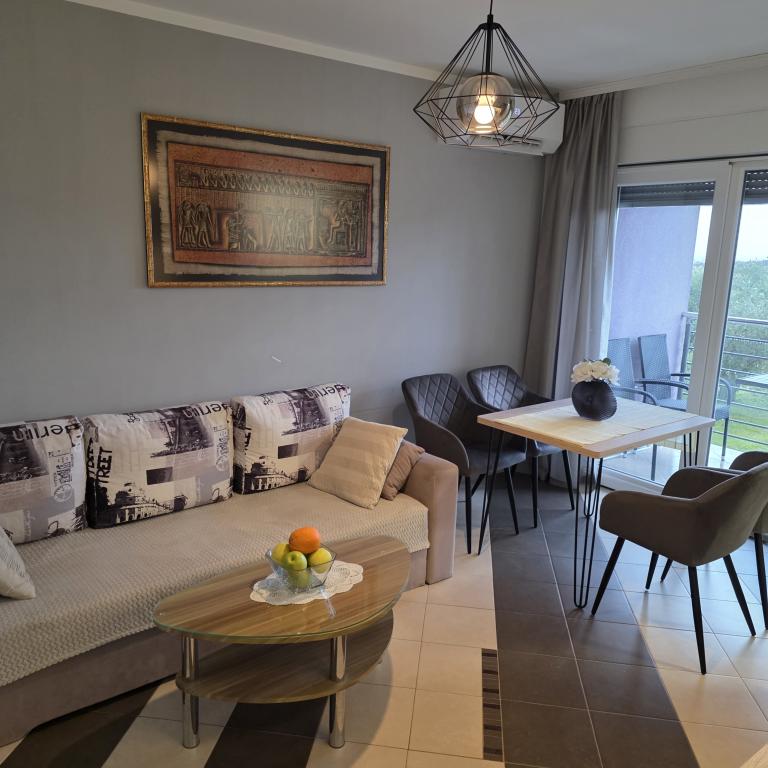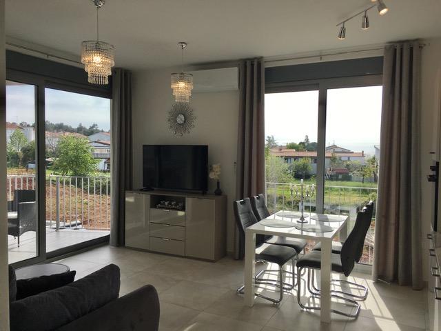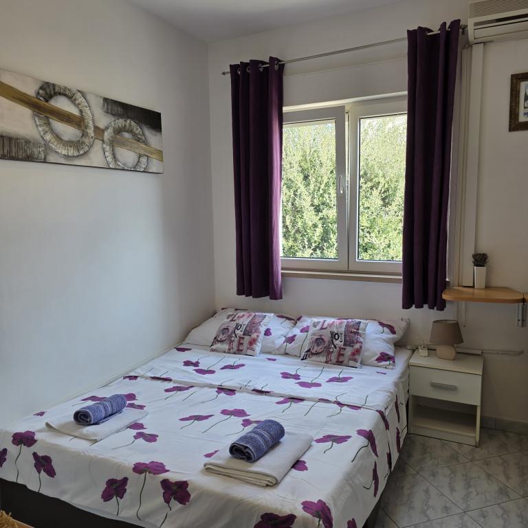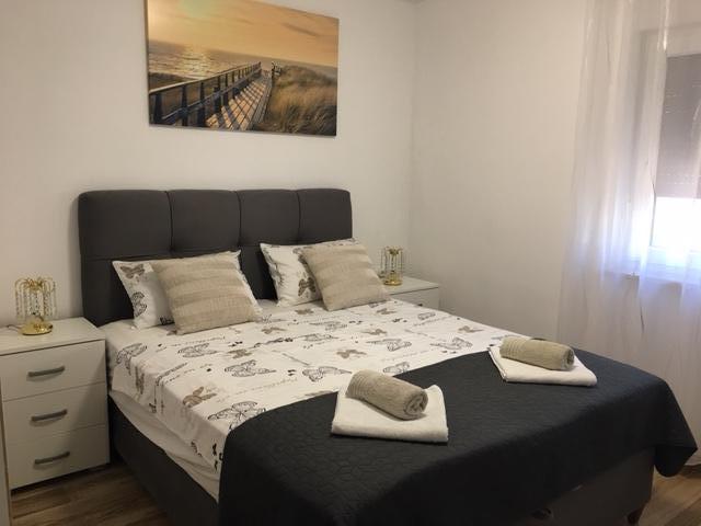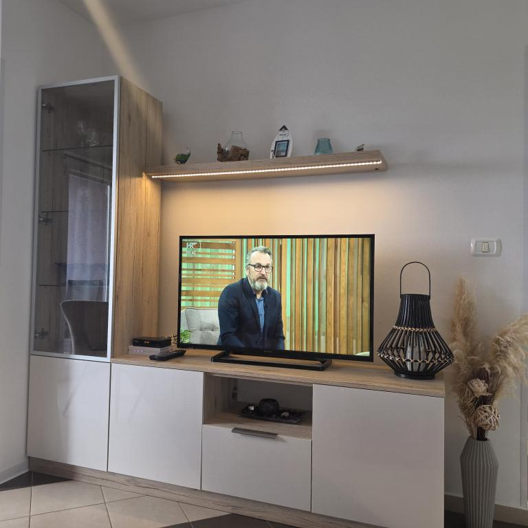 Lejligheder Mirella 4 ligger i den nybyggede bolig Lavender med havudsigt og en smuk udsigt over solnedgangen. Til havet og den smukke sandstrand ligger kun 150 m. Butikker, bageri og restauranter på 200 meter. Til centrum af Umag 3 km. Langs havet er der en promenade helt til centrum af Umag, og muligheden er transport med turisttog. Lejlighederne har aircondition og er fuldt udstyret med alle apparater. Badeværelse med massagebruser, vaskemaskine, hårtørrer, strygejern. Køkken med opvaskemaskine, mikroovn, kaffemaskine, kedel, stort køleskab med fryser og alt andet, der får gæsten til at føle sig hjemme. Gratis internet og sikret parkering er til rådighed. Prisen inkluderer brug af pool, liggestole, bruser, to-sæder, bord og stole i den overdækkede del af terrassen ved poolen. Tak for at du valgte Lejligheder Mirella, jeg håber, at vi til gengæld vil tilfredsstille dine ønsker under dit ophold i vores lejligheder. Vores mål er din tilfredshed og anbefaling. Kære gæster, velkommen til Apartments Mirella!