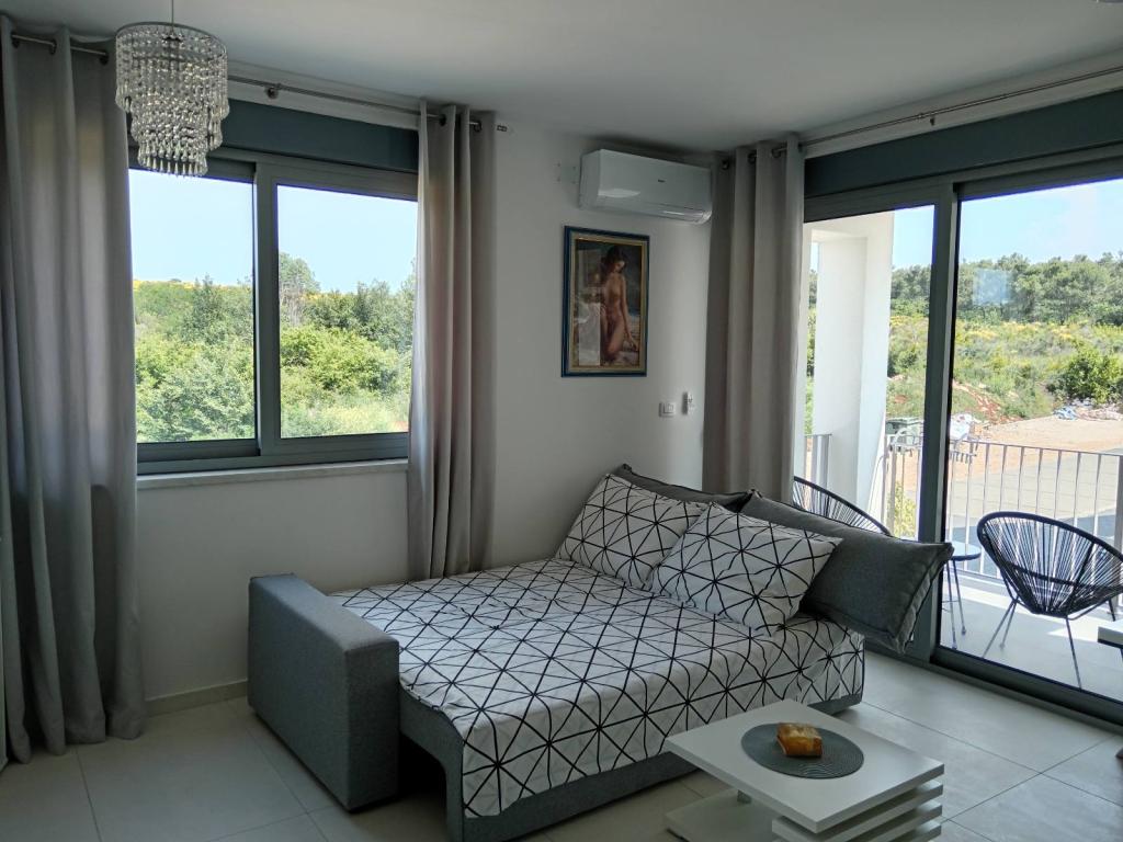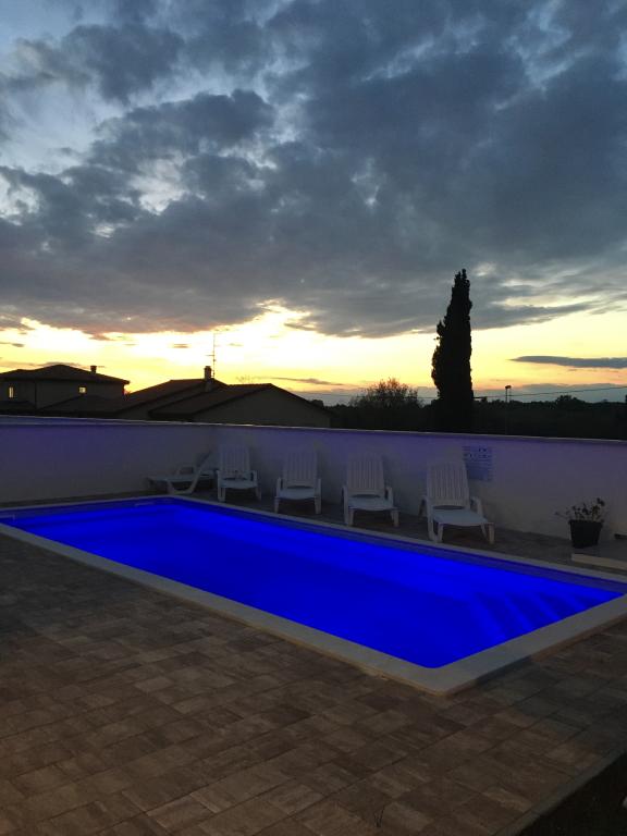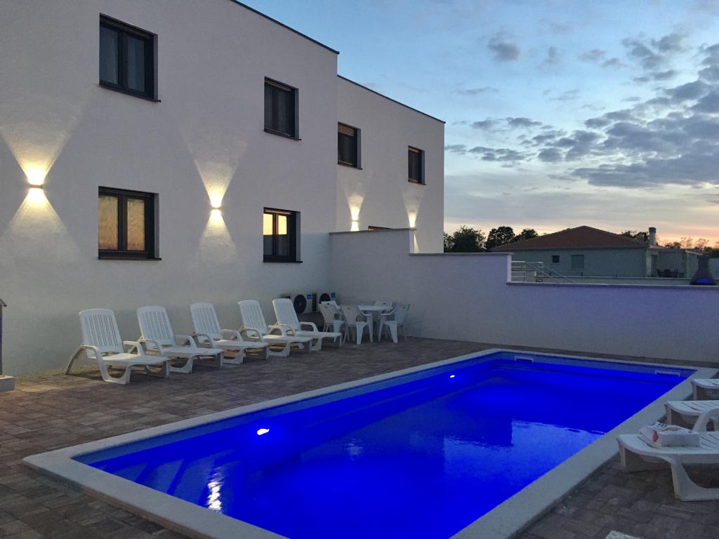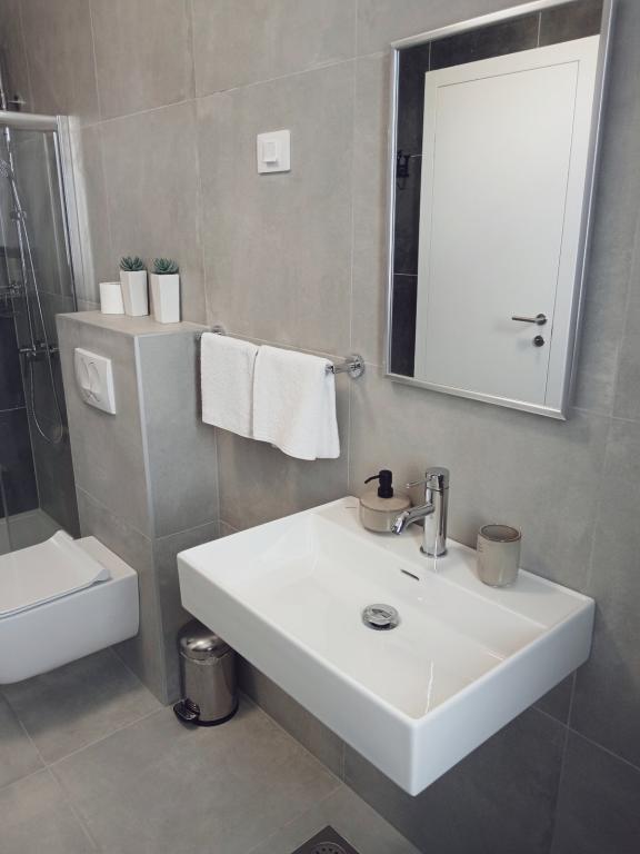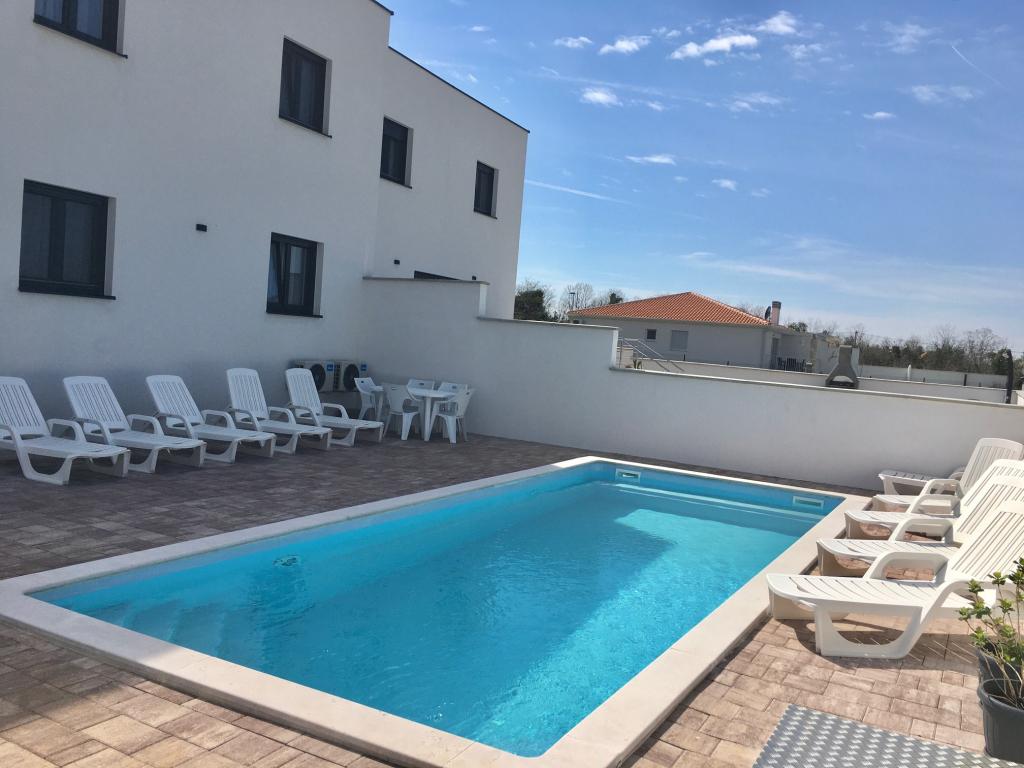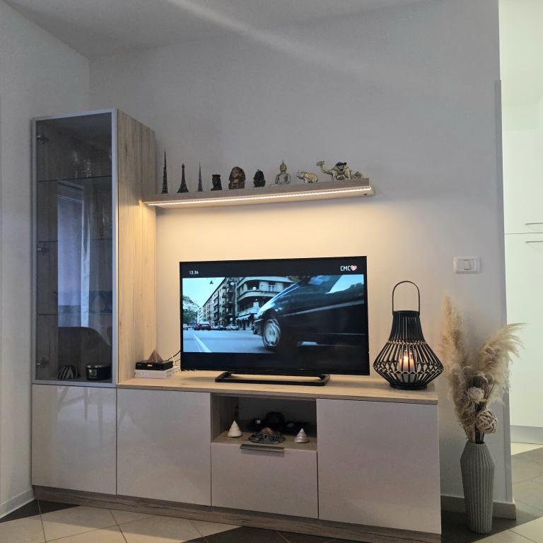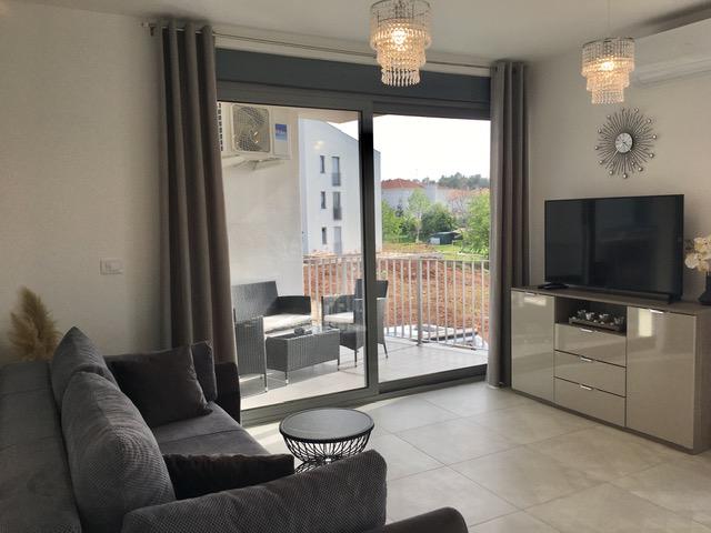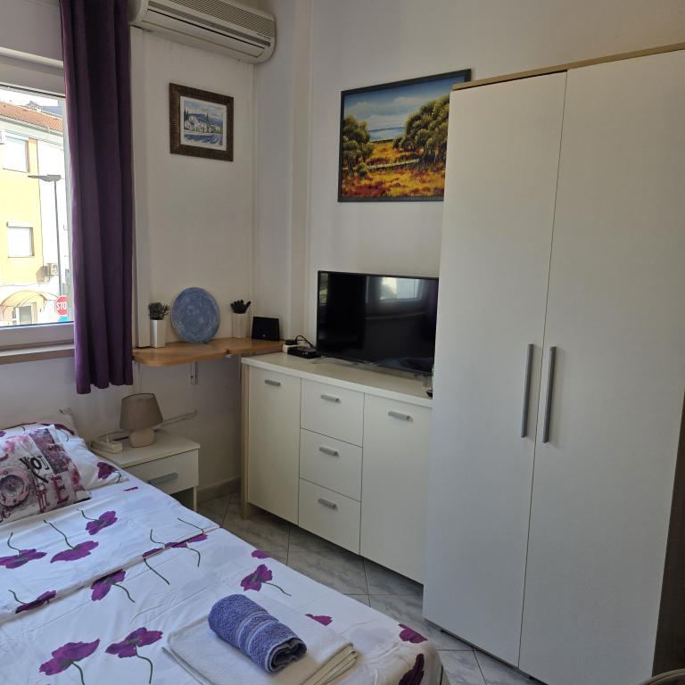 Lejligheder Mirella 4 ligger i den nybyggede bolig Lavender med havudsigt og en smuk udsigt over solnedgangen. Til havet og den smukke sandstrand ligger kun 150 m. Butikker, bageri og restauranter på 200 meter. Til centrum af Umag 3 km. Langs havet er der en promenade helt til centrum af Umag, og muligheden er transport med turisttog. Lejlighederne har aircondition og er fuldt udstyret med alle apparater. Badeværelse med massagebruser, vaskemaskine, hårtørrer, strygejern. Køkken med opvaskemaskine, mikroovn, kaffemaskine, kedel, stort køleskab med fryser og alt andet, der får gæsten til at føle sig hjemme. Gratis internet og sikret parkering er til rådighed. Prisen inkluderer brug af pool, liggestole, bruser, to-sæder, bord og stole i den overdækkede del af terrassen ved poolen. Tak for at du valgte Lejligheder Mirella, jeg håber, at vi til gengæld vil tilfredsstille dine ønsker under dit ophold i vores lejligheder. Vores mål er din tilfredshed og anbefaling. Kære gæster, velkommen til Apartments Mirella!