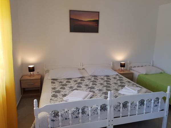Apartments Banestra ligger ved havet, 2 km fra Ustrina. Lejlighederne er velegnede til alle, der elsker fred, ro og at være i naturen. Ideel til at tilbringe en afslappende ferie væk fra byens stress og jag. Huset består af 2 lejligheder, den ene til 5 personer og den anden til 6 personer. I stueetagen er der en lejlighed til 5 personer bestående af 2 værelser med dobbeltseng, hvoraf det ene har en seng til en person, et toilet, et køkken og en terrasse med grill. Lejligheden til 6 personer ligger på første sal og består af 3 værelser med dobbeltseng, køkken, toilet og terrasse med grill i stueetagen. Lejlighederne har ingen moderne teknologi (tv, satellit, aircondition, internet, telefon). Lejlighederne fungerer fuldt ud på solenergi (220V), dvs. el og varmt vand opnås gennem solfangere på taget. Huset kan kun nås med båd eller til fods ad en gangsti 10 minutter fra parkeringspladsen. Varer transporteres fra parkeringspladsen til huset én gang ved ankomst og afgang med båd. Lejligheder kan bookes i 7 dage fra lørdag til lørdag.