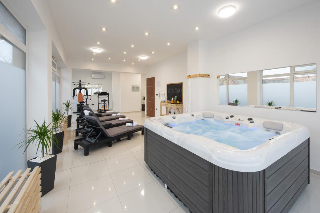 Lejlighedens pris inkluderer et wellnessområde med hydromassagekar, sauna, liggestole og fitnessudstyr. Også andre faciliteter såsom en boksesæk, dart og bordfodbold er inkluderet.