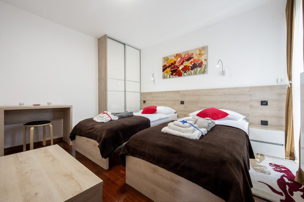 Ratkajec Luxury Apartments er perfekte til familier, forretningspartnere, sportstyper eller enkeltpersoner på grund af de faciliteter, det tilbyder. Disse moderne lejligheder er beliggende i Varaždin, cirka 1,7 km fra byens centrum. Der er en indhegnet parkeringsplads ved siden af bygningen, som er under videoovervågning. Lejligheden har aircondition og er udstyret med centralvarme og en opvaskemaskine og vaskemaskine, den kan rumme op til 6 personer. Lejligheden har to soveværelser, det ene med dobbeltseng, og det andet med 2 enkeltsenge + opredning i stuen. Lejlighedens pris inkluderer et wellnessområde med hydromassagekar, sauna, liggestole og fitnessudstyr. Også andre faciliteter såsom en boksesæk, dart og bordfodbold er inkluderet. I nærheden af lejligheden er der butikker, caféer, restauranter med et varieret gastronomisk udbud af traditionelle retter og drikkevarer og mange kulturelle seværdigheder.