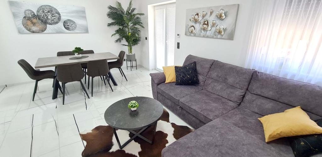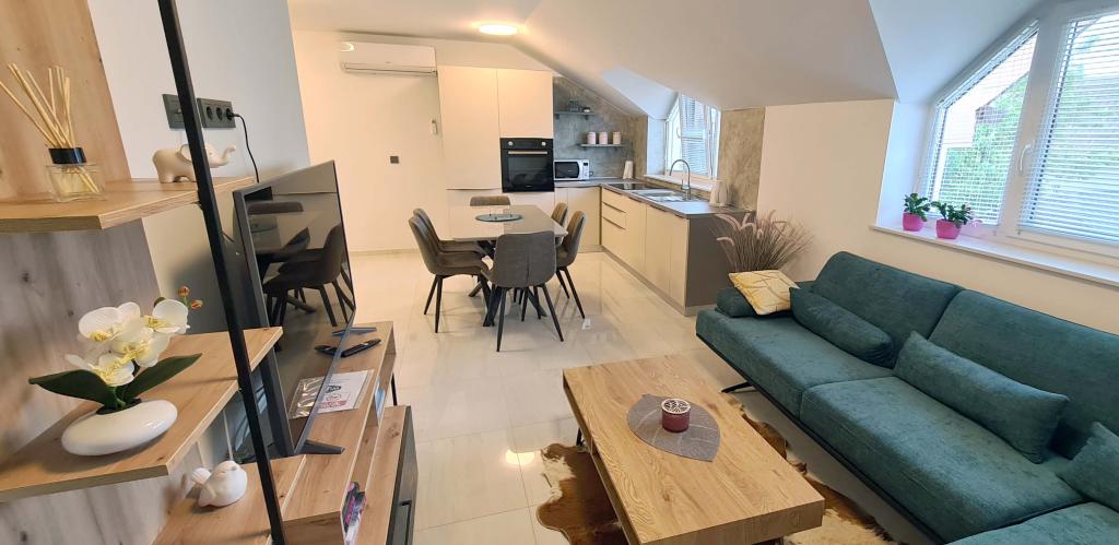 Apartmani Magić Afslapning på landet i den lille landsby Imbriovec, ikke langt fra barokbyen Varaždin, i et intimt naturmiljø, ligger den moderne indrettede ejendom for familien Magić. Apartments Magić er det rigtige sted for en afslappende familieferie, en flugt fra det daglige jag med et strejf af uberørt natur, men også for elskere af aktive ferier. Den moderne indrettede og rigt udstyrede bygning består af 2 lejligheder og en studielejlighed med plads til i alt 11 personer. Den store gård tilbyder dig et enkelt, intimt og afslappende tilflugtssted. Denne private oase, rig på grønt og dekoreret med blomster, har en rummelig overdækket terrasse med åben grill. For de mindste er der et børnehjørne med gynger og en rutsjebane, hvor børn kan lege og hygge sig uhindret.