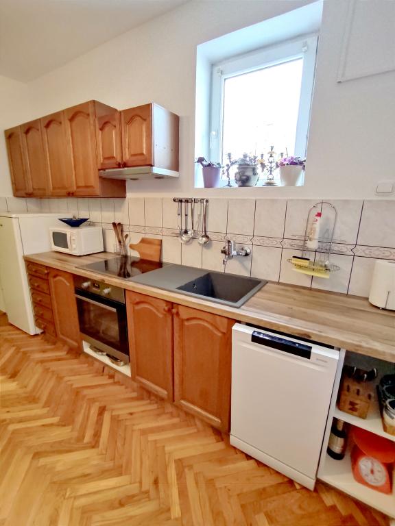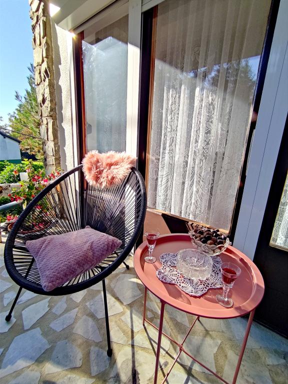 Lejlighed indrettet i slavisk stil, moderniseret, funktionel, omgivet af træer og vandløb i landsbyen Velika podno Papuka. Køkkenet er udstyret med hårde hvidevarer og fade til tilberedning og servering af mad. I soveværelset er der en stor dobbelt, håndlavet egetræsseng, samt dobbelt garderobeskab, natbord og makeupbord med spejl. I den rummelige stue er der en læder tre- og to-personers samt et smart TV med udgang til terrasse med havemøbler. Badeværelset har gulvvarme, bruser og vaskemaskine. Til din rådighed er en gårdhave med en baldakin og et stort bord med bænke, en grill, en legeplads og en trampolin. Bag bygningen er et vandløb, hvor du kan fiske eller forfriske dig på varme dage. Lejligheden er beliggende nær naturparken, adrenalinparken, vandlandet, skov og vingård. Det er 300 m fra restauranten, 1000 m fra butikken og tankstationen.