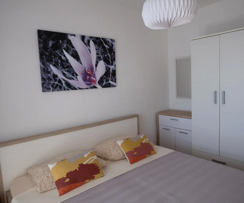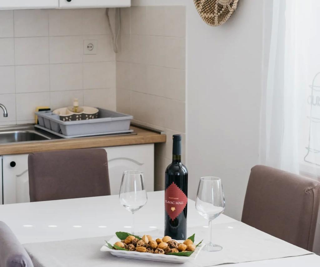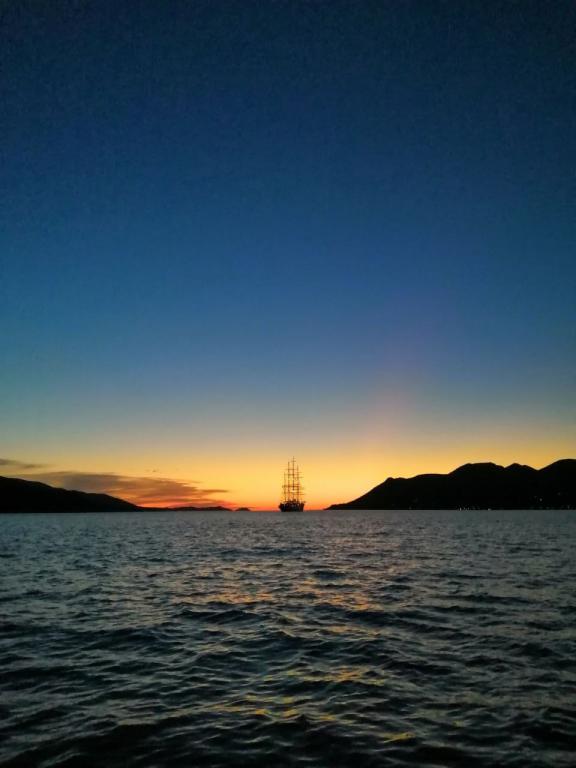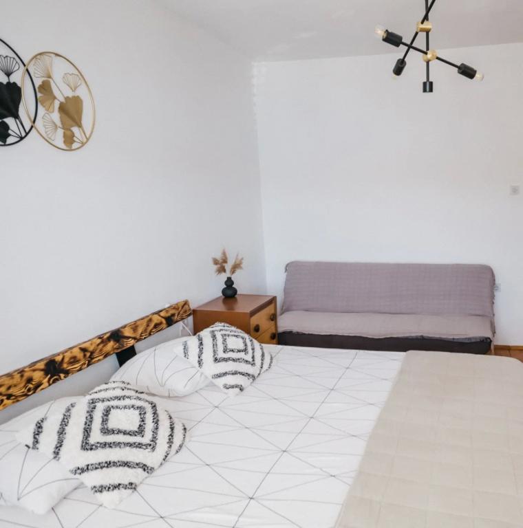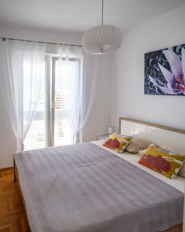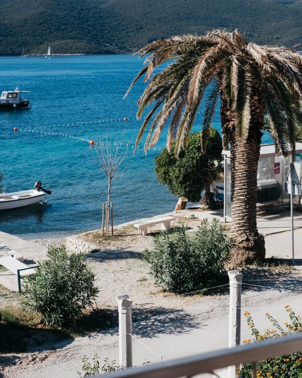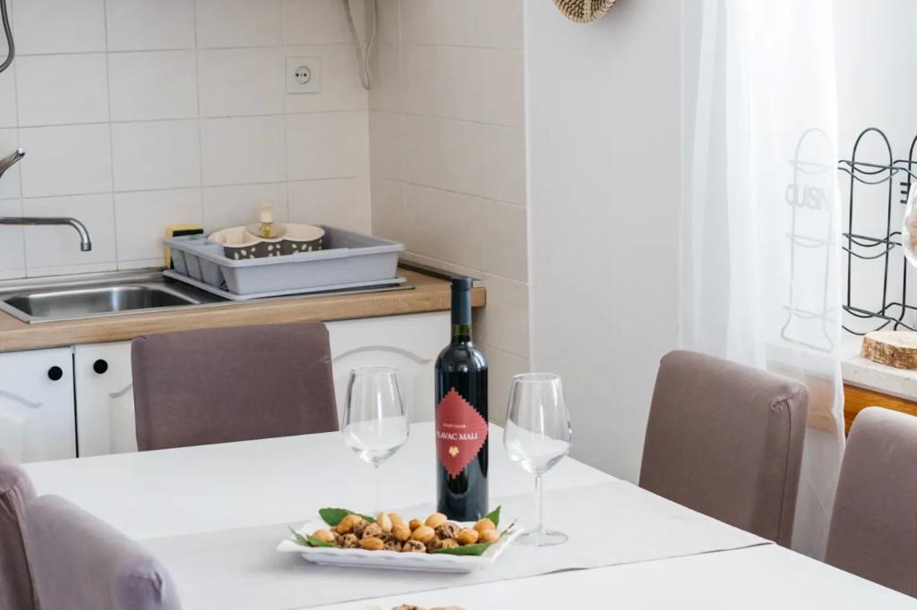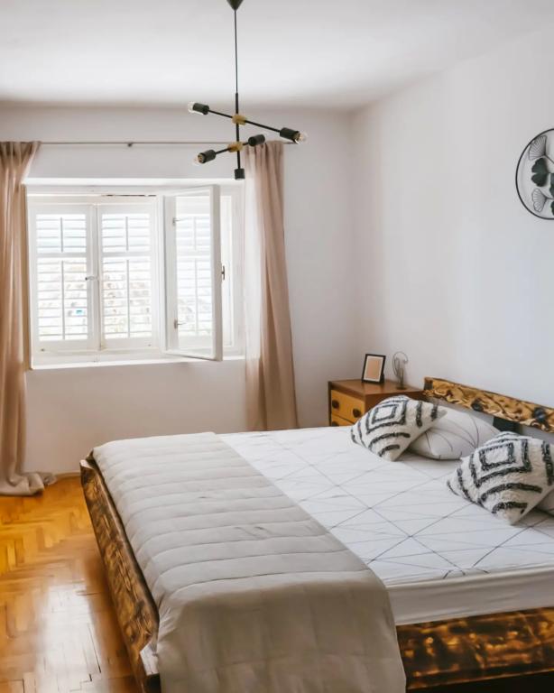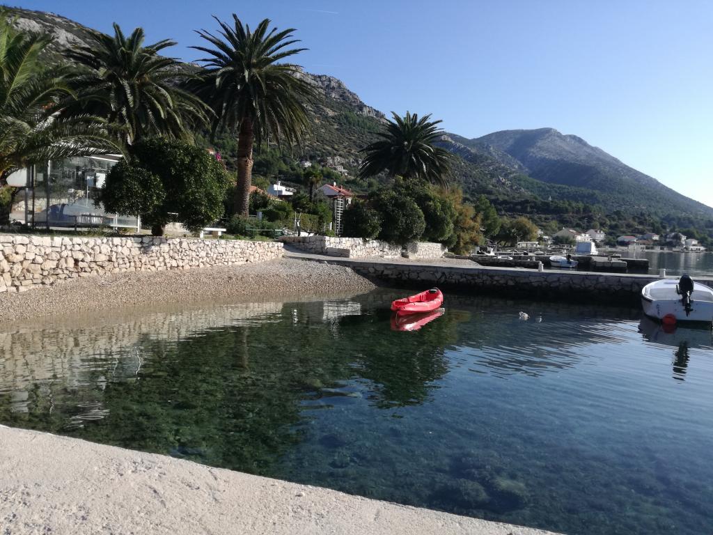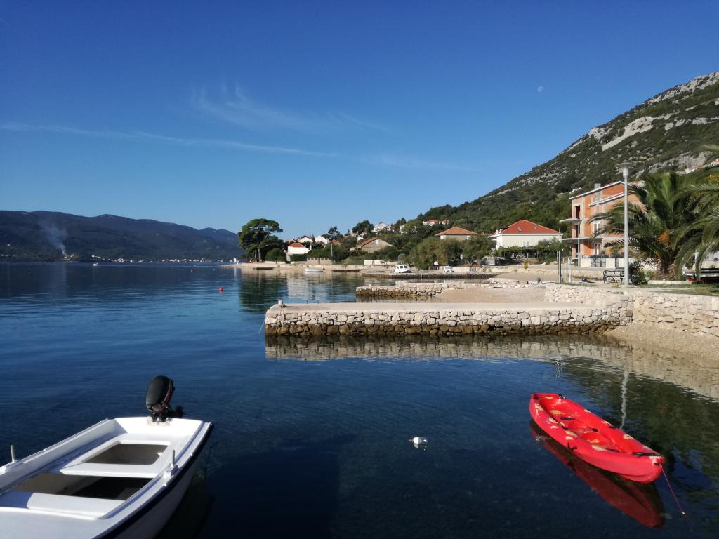 Lejligheden er beliggende på gulvet af huset, som er placeret tæt på havet. Afstanden fra byens centrum kun et par minutters gang, hvor der er en butik og ATM. Lejligheden har et køkken, fire soveværelser og to badeværelser. Ideel til stor familie eller gruppe af venner. Foran huset er der en terrasse med et stort træbord, grill og gynge. Der er også en balkon med udsigt over havet, når de forlader to værelser. Umiddelbart foran huset er der to (pebble) strand og en køje til båden. Prisen inkluderer skat, brug af internettet og parkering. Vi håber at være dine værter!