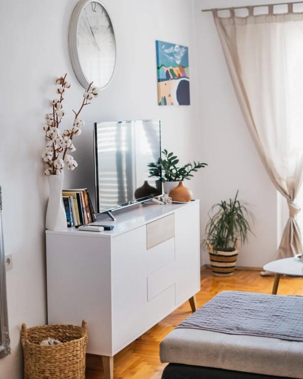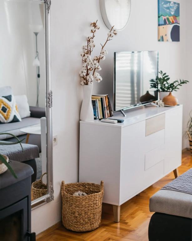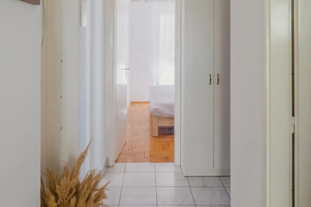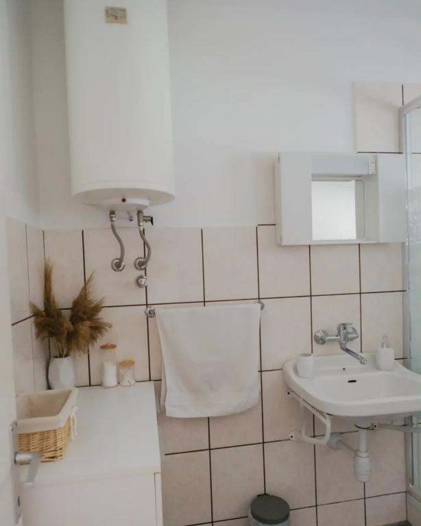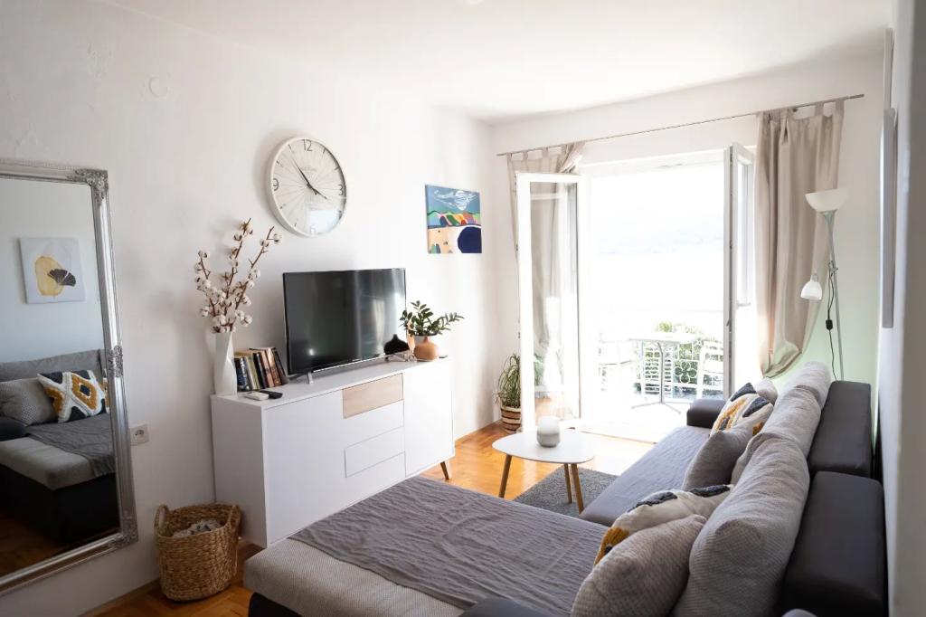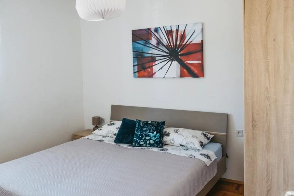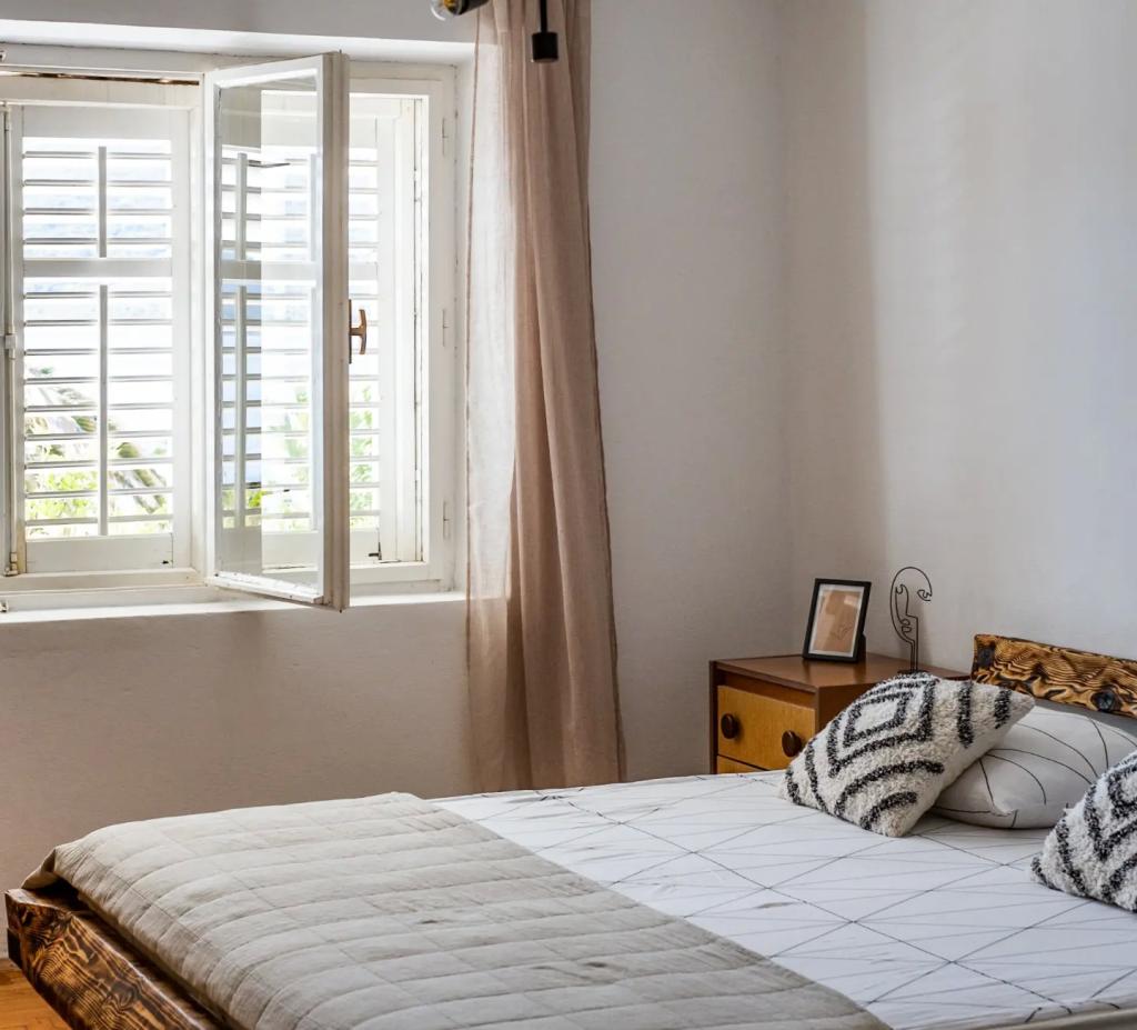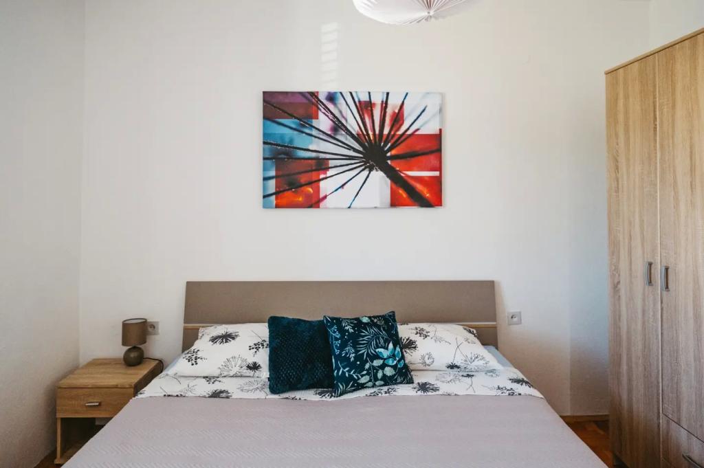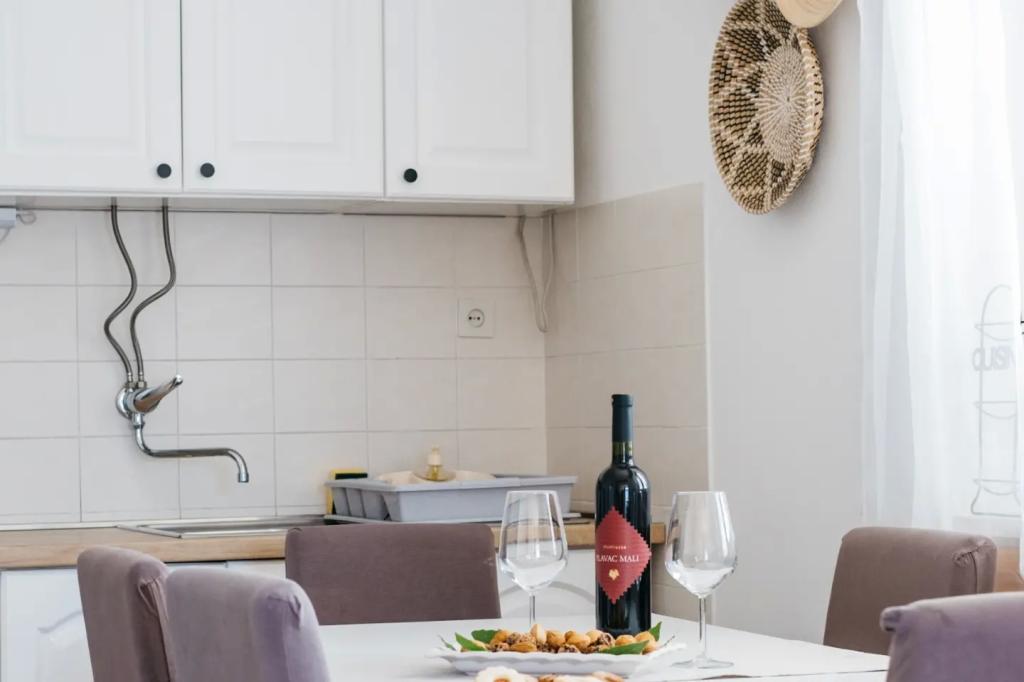 Lejligheden er beliggende på gulvet af huset, som er placeret tæt på havet. Afstanden fra byens centrum kun et par minutters gang, hvor der er en butik og ATM. Lejligheden har et køkken, fire soveværelser og to badeværelser. Ideel til stor familie eller gruppe af venner. Foran huset er der en terrasse med et stort træbord, grill og gynge. Der er også en balkon med udsigt over havet, når de forlader to værelser. Umiddelbart foran huset er der to (pebble) strand og en køje til båden. Prisen inkluderer skat, brug af internettet og parkering. Vi håber at være dine værter!