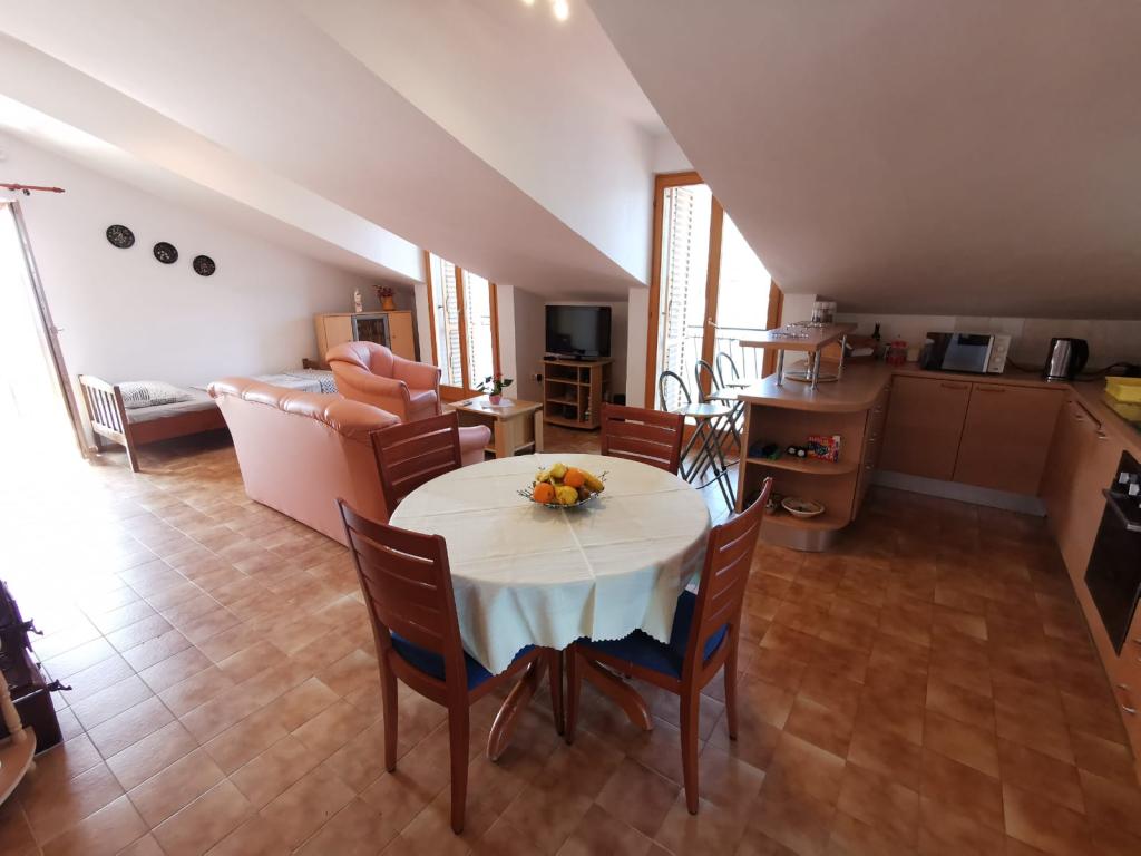 Apartment Dadić er beliggende i en lille, rolig dalmatisk by. Den anden række er placeret ved siden af havet (adgang via trapper fra vejen), som giver en vidunderlig udsigt over havet og de nærliggende øer. Lejligheden har to terrasser og er udstyret med alt hvad du behøver for en behagelig ferie, og du kan bruge en udendørs grill. Lejligheden inkluderer også fælles brug af en udendørs bruser. Lejlighedsindkvartering er ideel til at organisere endagsture til Trogir, Split eller Šibenik. Der er 60 km til Krka Nationalpark og 80 km til rafting på Cetina-floden.