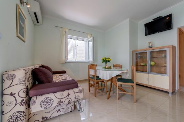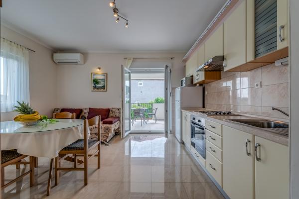Ferielejligheder i overensstemmelse med beskrivelsen. Rent, velholdt. Ejere meget flot og pomocni.Przepiękny terrasse, hvor du kan slappe af i liggestole og nyde det fantastiske hav. Udstyret med alt hvad du behøver. Zewnętrzy til brusebad og bruge grillen også. Tæt på stranden, til butikkerne også. Hver morgen kan du købe frisk fisk. Meget flot lille sted, hvor klimaet er perfekt, vinden blæser fra havet, hvilket er en sjældenhed i Kroatien. Trods det varme vejr, kan du hvile og slappe af. Den eneste ulempe er, at lejligheden ikke har et skyggefuldt sted at parkere din bil. Bortset fra, at alt stort. Vejen til toppen af Marina er ikke besværlig. Det er værd at drevet bugten ved den gamle Trogir, vejen skræmmende, men visningen som Caribien. Vi vil helt sikkert vende tilbage igen.