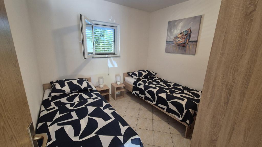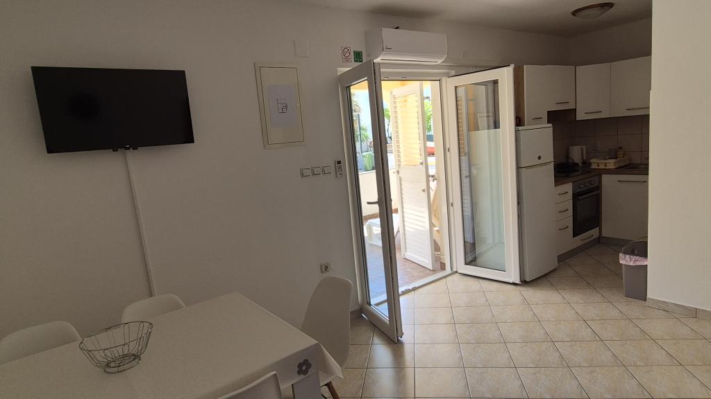 Lejlighed til en rigtig ferie – tæt på stranden, langt fra bekymringer! Find dig i en rummelig lejlighed med to soveværelser, stue, køkken, spisestue, badeværelse, terrasse og egen parkeringsplads. Alt er klar til din ankomst – sengelinned, service, vinglas (og selvfølgelig juice). Medbring kun håndklæder og personlige hygiejneartikler – resten venter på dig! Žitna uvala strand, restauranter og promenade – 200 meter; bageri, butikker, souvenirbutik – 250 meter; terrasse – perfekt til morgenkaffe og aftenens "lave ingenting"; parkeringsplads – for selv bilen vil have en pause. Her er du tæt på alt, men langt nok væk til virkelig at hvile dig. Book i tide – lejligheden venter ikke længe på at blive ledig!