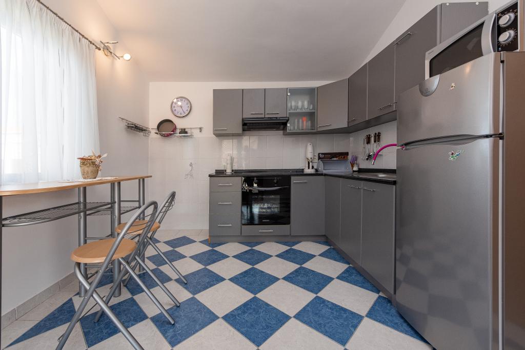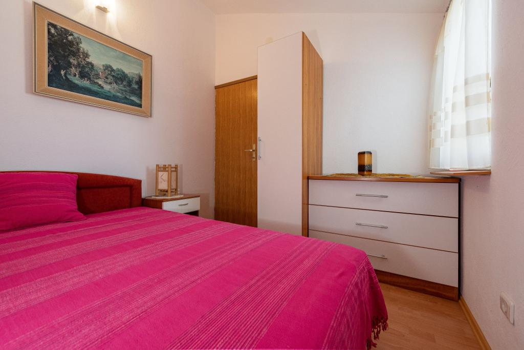 Lejligheden er beliggende i en stille gade på øen Vir. Afstanden til stranden er en let gåtur på fem minutter. Der er to strandbarer, et bageri og en restaurant på stranden. Stranden er sandet, ideel til børn. Lejligheden har aircondition, nyrenoveret, med separat indgang og en overdækket terrasse på 20 m2. Den består af et køkken med spisestue, stue, badeværelse og to soveværelser. Lejligheden har gratis WiFi og satellitprogrammer via A1. Der er parkeringsplads i den lukkede gårdhave.
