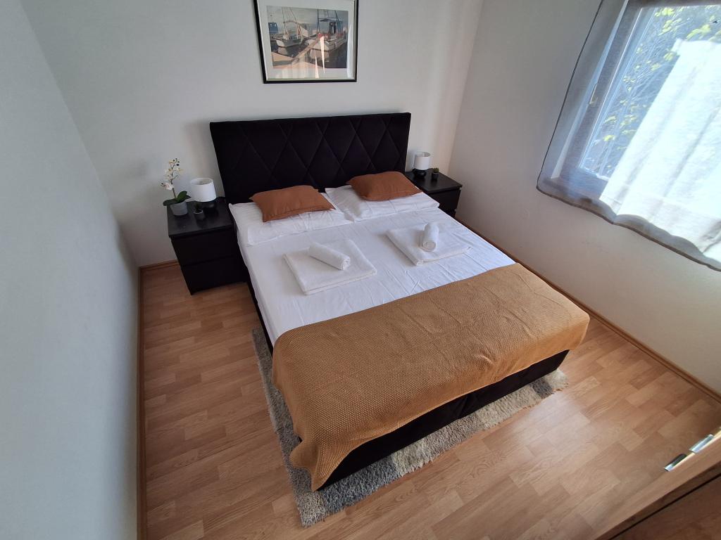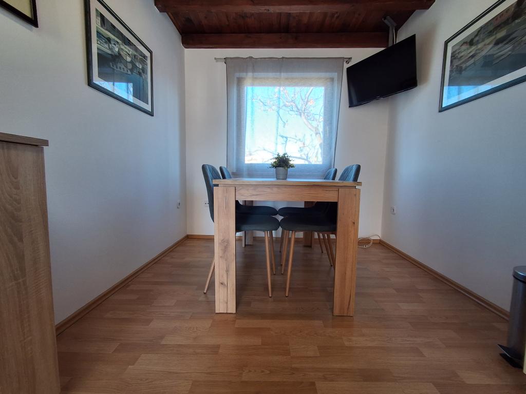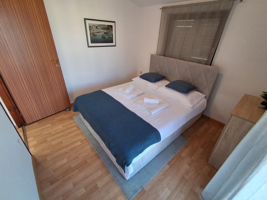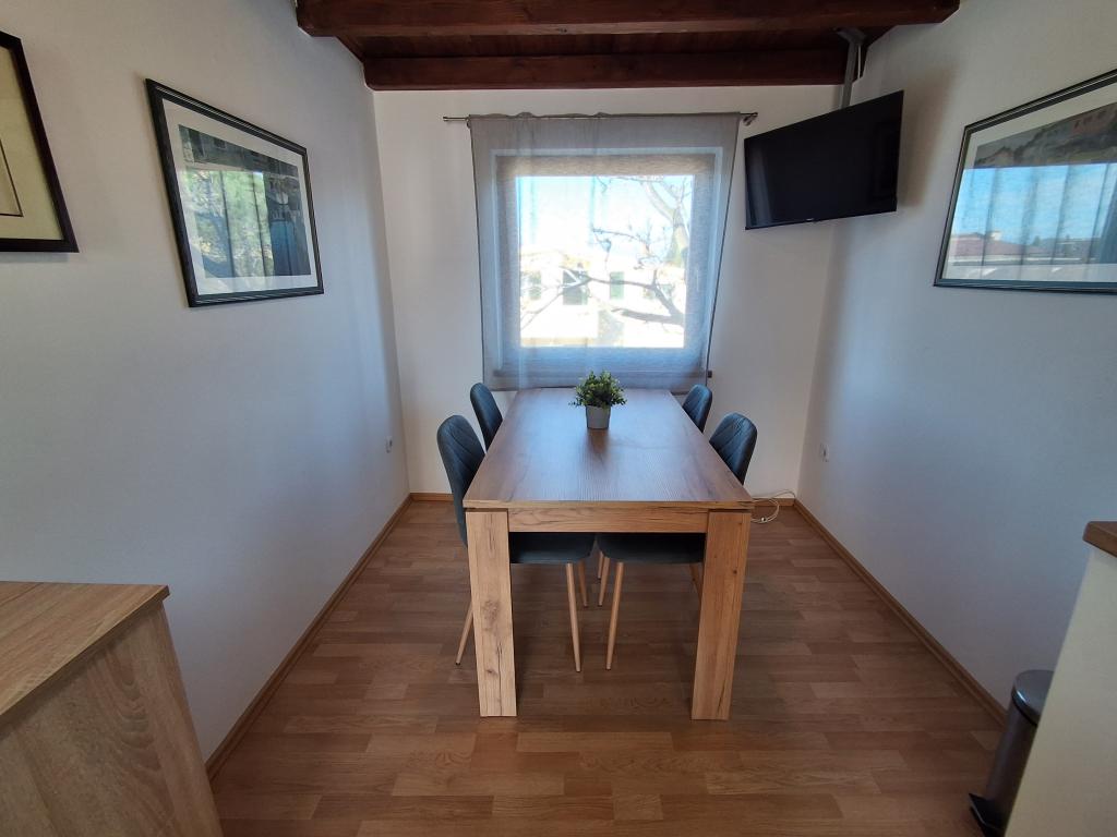 Pænt og moderne indrettet lejlighed til fire på øen Vir er ideel til familieferier. Det ligger få minutter fra stranden som er velegnet til børn, centrum hvor der er en promenade langs kysten, posthuset, kirken, busstationen som ligger i umiddelbar nærhed og butikken. Lejligheden er 50 m2 stor og har separat indgang. Prisen inkluderer en parkeringsplads, aircondition i hele lejligheden, grill, sommerbruser placeret i gården. Den består af to soveværelser, badeværelse med bruser, køkken med spisestue og terrasse. Det er beliggende i en rolig del af øen Vir, men alt er inden for rækkevidde, perfekt til en ideel ferie.