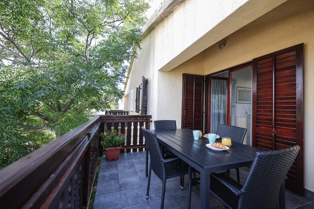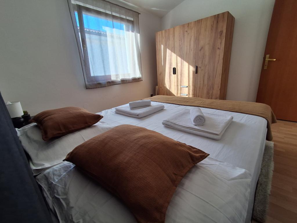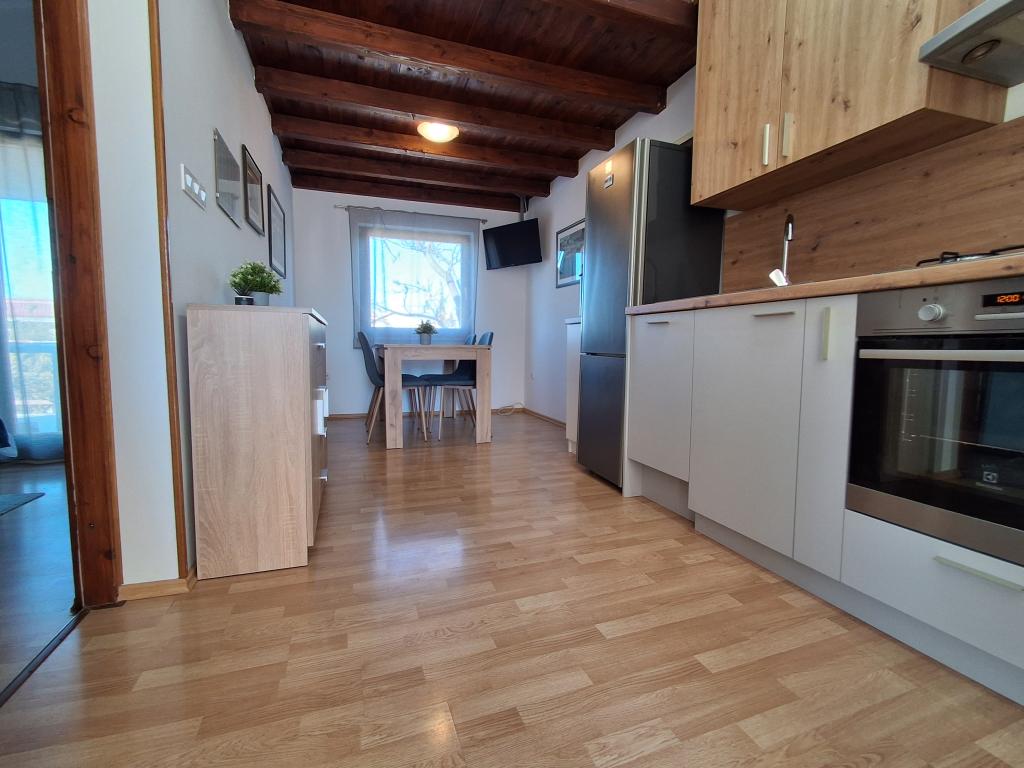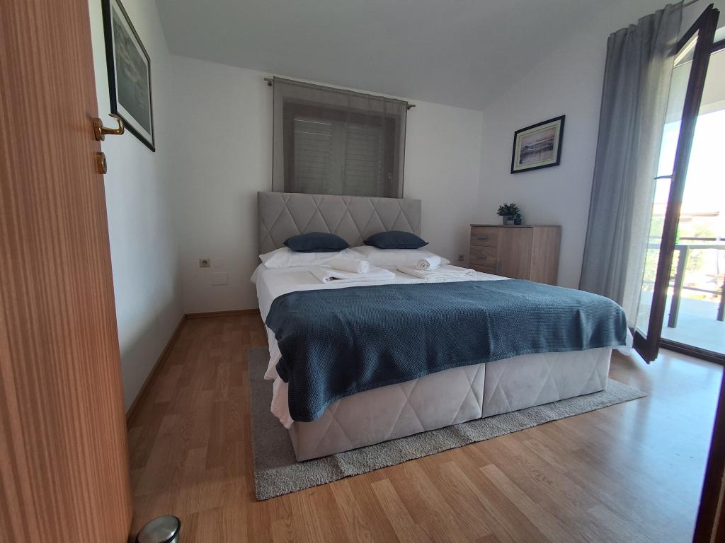 Pænt og moderne indrettet lejlighed til fire på øen Vir er ideel til familieferier. Det ligger få minutter fra stranden som er velegnet til børn, centrum hvor der er en promenade langs kysten, posthuset, kirken, busstationen som ligger i umiddelbar nærhed og butikken. Lejligheden er 50 m2 stor og har separat indgang. Prisen inkluderer en parkeringsplads, aircondition i hele lejligheden, grill, sommerbruser placeret i gården. Den består af to soveværelser, badeværelse med bruser, køkken med spisestue og terrasse. Det er beliggende i en rolig del af øen Vir, men alt er inden for rækkevidde, perfekt til en ideel ferie.