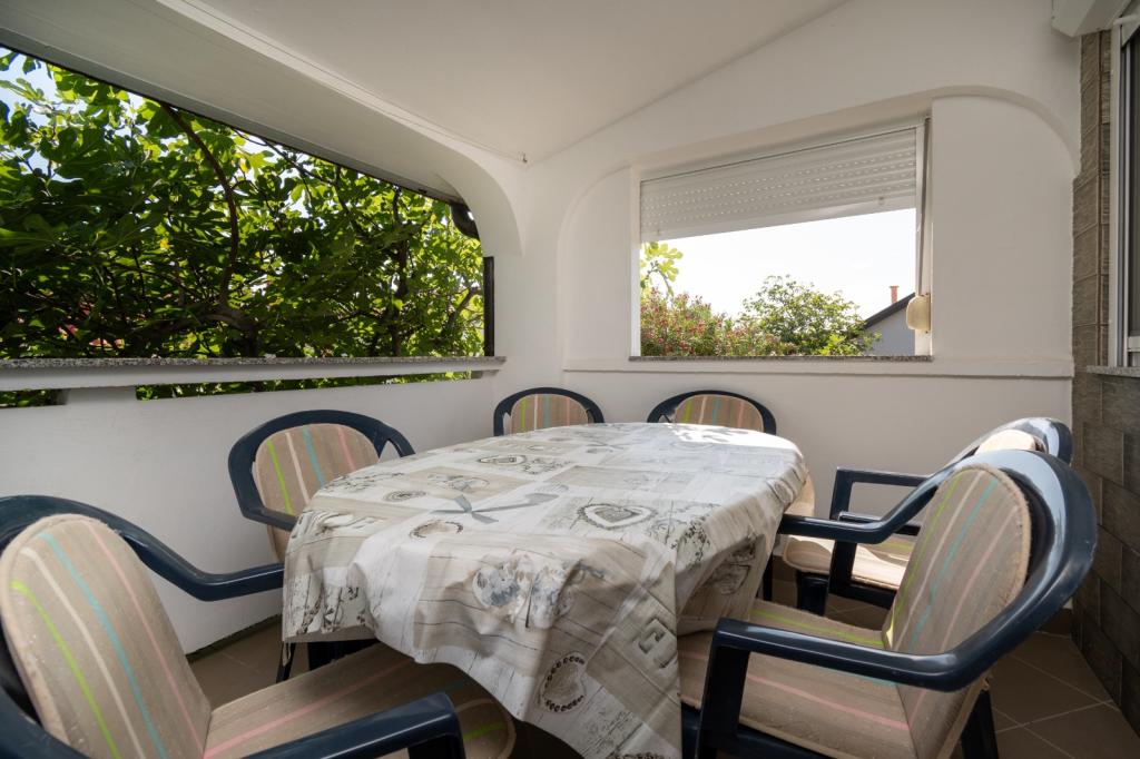 Treværelses lejlighed til leje for 4 +1, 24. Prezida nr. 2, på sydsiden af øen Vir, 100 m fra havet, parkering, wi-fi, aircondition, opvaskemaskine, vaskemaskine, terrasse.