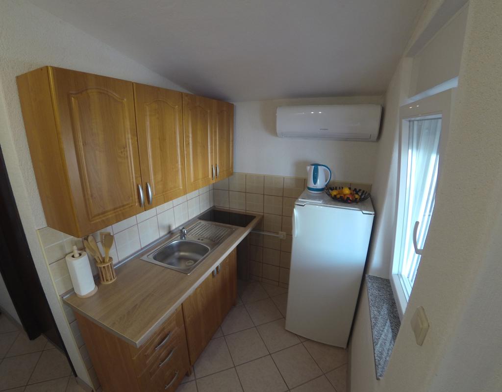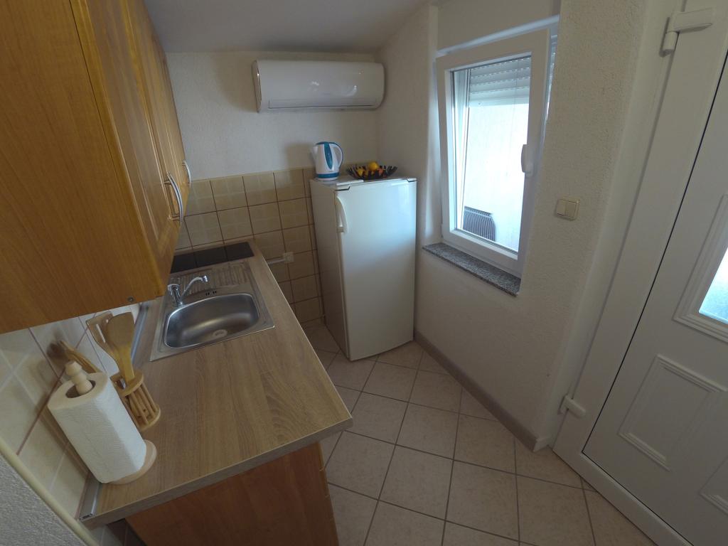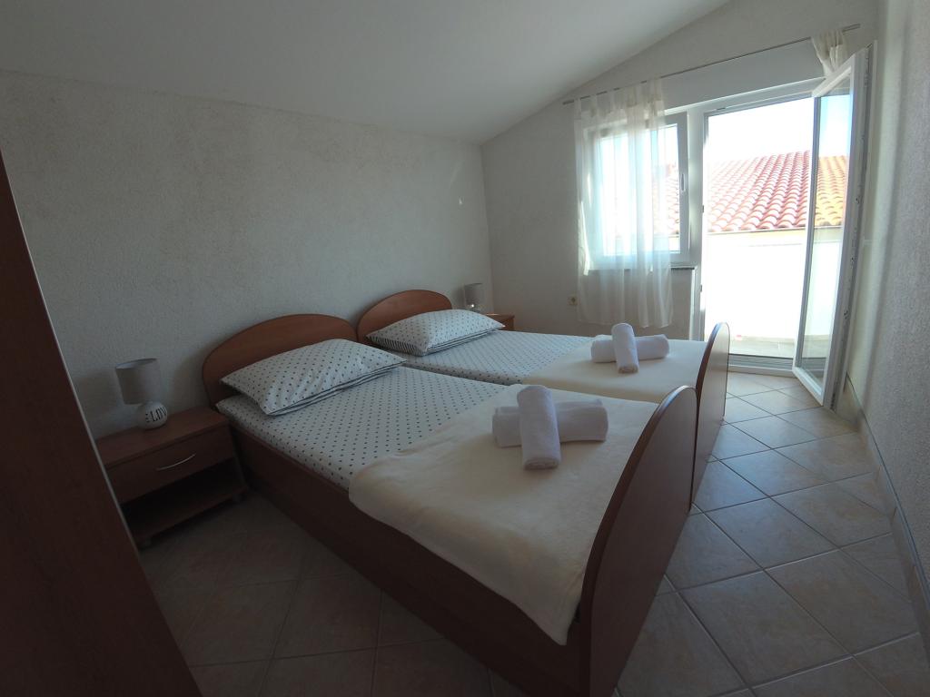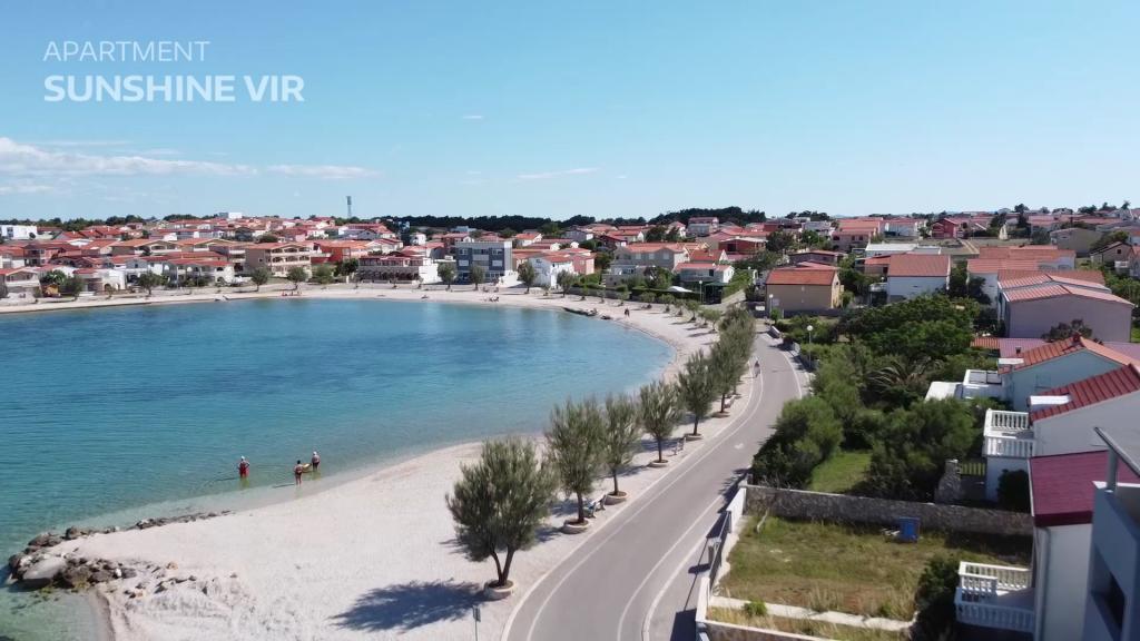 Toværelses lejlighed 'Sunshine' på øen Vir. Lejligheden ligger i en stille gade, 90 meter fra stranden. Stranden har sandbund, så den er ideel for børnefamilier. Butik, bageri, cafébar inden for 50 meter. Én parkeringsplads til rådighed, Wi-Fi, aircondition. Myggenet på alle døre og vinduer. Ankomsttid: Fra kl. 14:00, afgangstid indtil kl. 9:00.