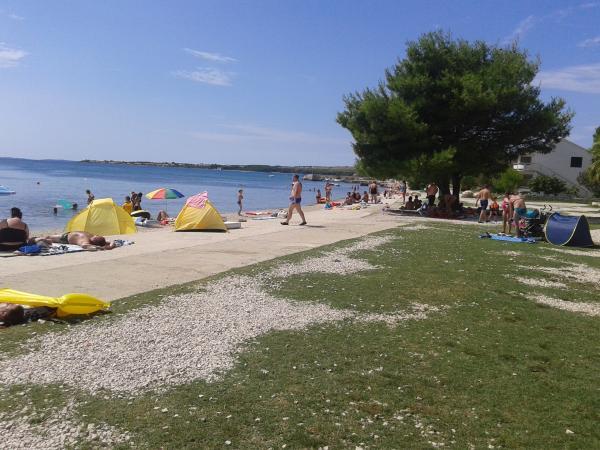 Velkommen til øen Vir i lejligheden til familien Mužina, som har tilbudt deres tjenester i mange år. Huset ligger på den sydlige side af øen i den rolige landsby Luka, ideel for par med børn, som har deres eget rum omkring huset til at lege og en sikker vej til stranden. Du kommer til centrum af øen fra lejligheden ved en promenade langs havet. Lejligheden er fuldt udstyret og har aircondition. Huset er tilsluttet byvand og spildevand. Det har to soveværelser med en dobbeltseng (et soveværelse med en terrasse og et tv), et køkken, et badeværelse og en terrasse med bord og stole. Sikker brug af internettet. Lejligheden er ideel til fire voksne eller en familie med to eller tre mindre børn. Der er 5 minutters gang til stranden og 2 minutters gang til supermarkedet. Brug af den udendørs grill, som er placeret i skyggen af et stort figentræ, samt sikret parkering. Muligheden for at bruge en udendørs bruser.