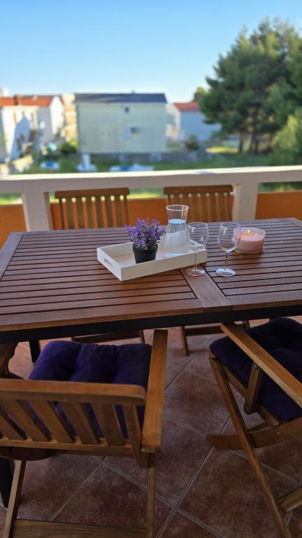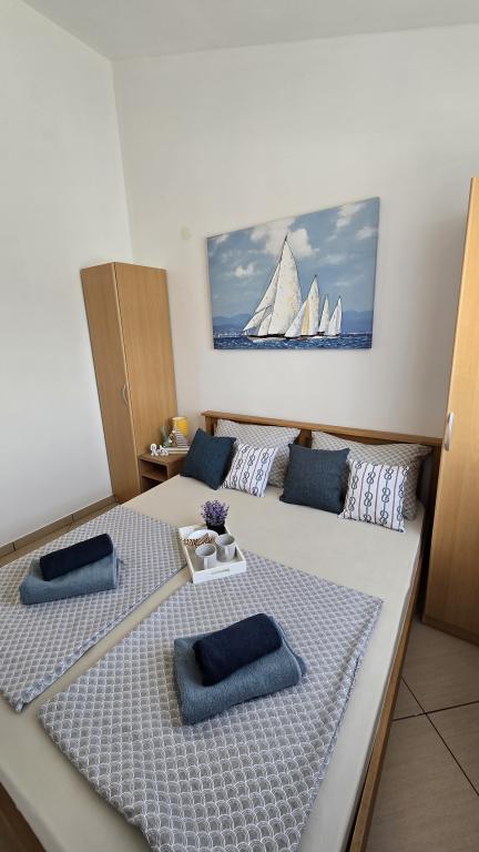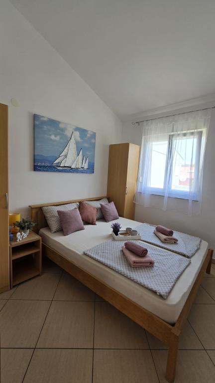 Marcela Apartments ligger i den sydlige del af øen Vir i rolige omgivelser. Foran lejligheden er en stor rummelig eng, der giver dig privatliv i din ferie, og fra lejligheden er der en sti, der fører dig direkte til stranden. Lejligheden i underetagen har et soveværelse med en behagelig dobbeltseng og to ekstra senge. Den øverste lejlighed på 1. sal har også et værelse med en dobbeltseng og to ekstra senge. Begge lejligheder har alt hvad du behøver for en rolig og behagelig ferie: stor terrasse, aircondition, wi-fi, LCD / SMART TV, grill, sengetøj, håndklæder, parkeringsplads, udendørs bruser. Stranden egnet til børn er kun 70 meter væk eller to minutters gang. Bare en kort gåtur væk er der en butik, et bageri og en café lige på stranden. Vires centrum ligger 20 minutters gang væk, så du ikke har brug for en bil i løbet af din ferie. Lejligheden er kæledyrsvenlig med den bemærkning, at hunde skal være pæne og socialiserede
