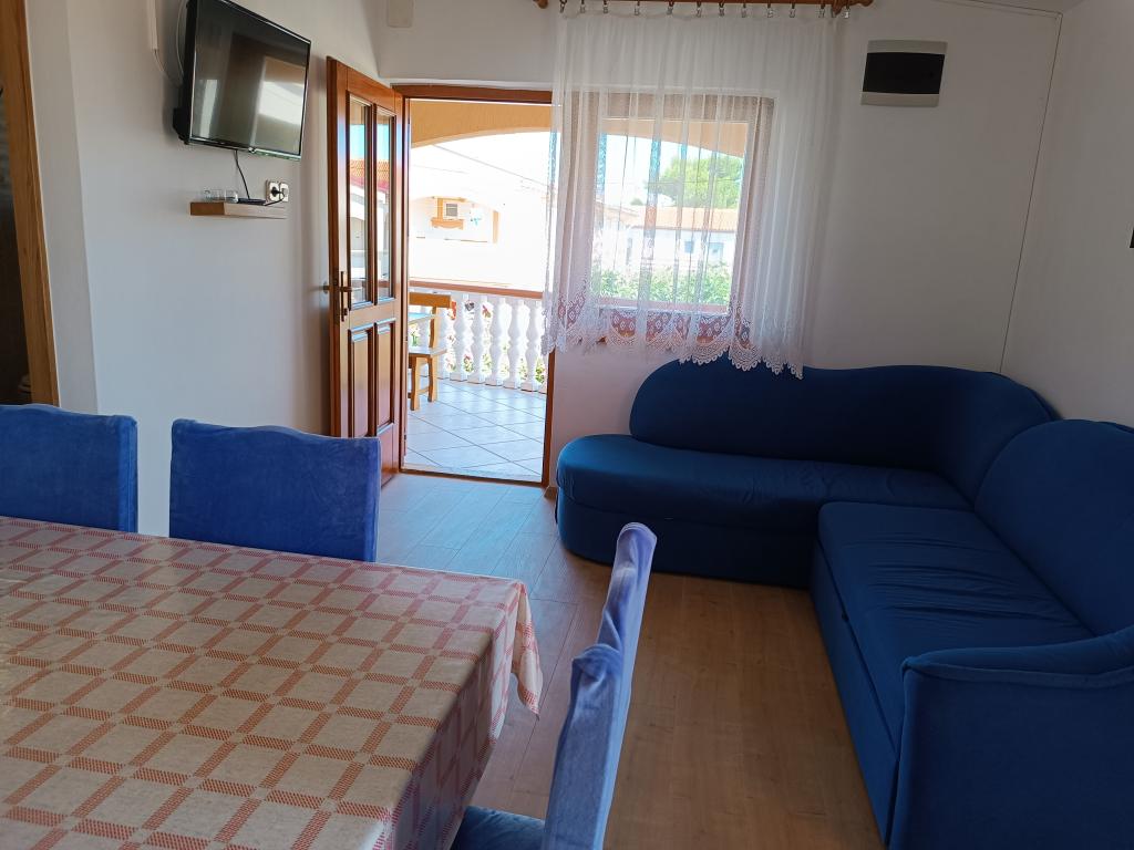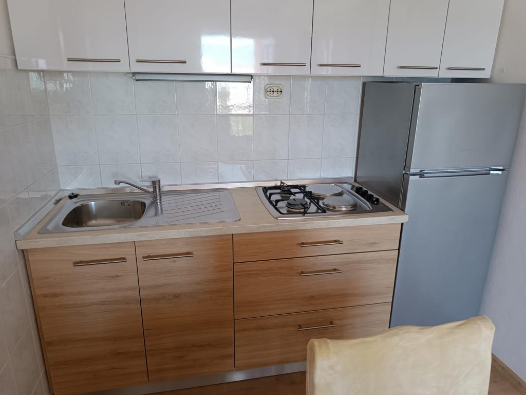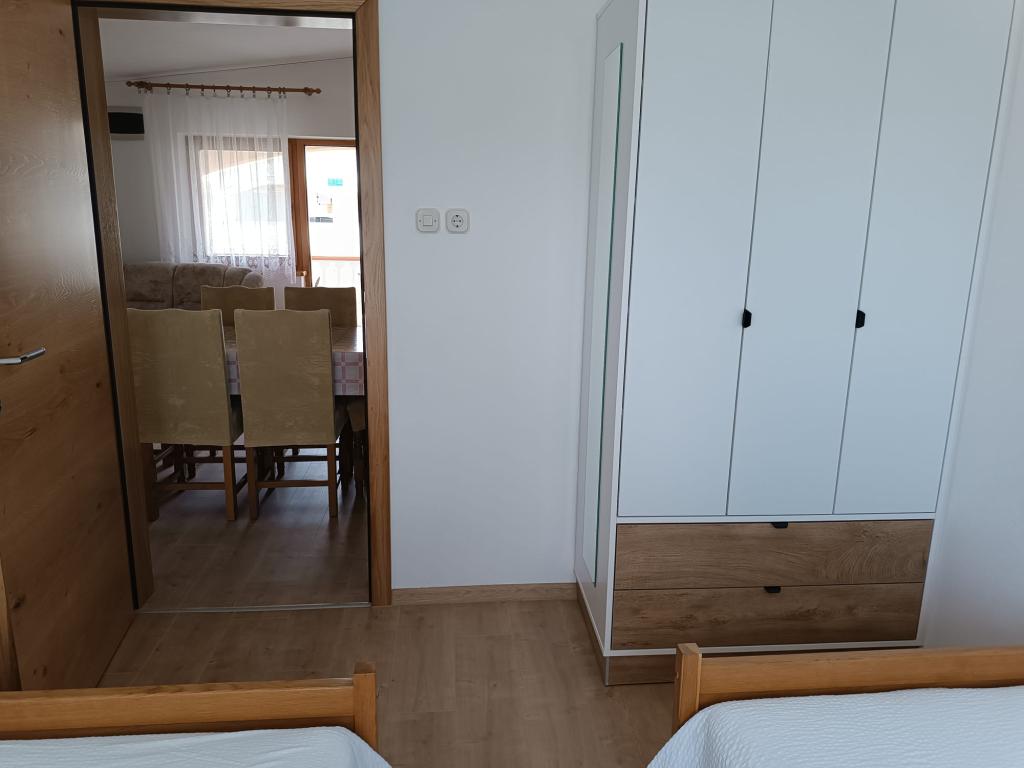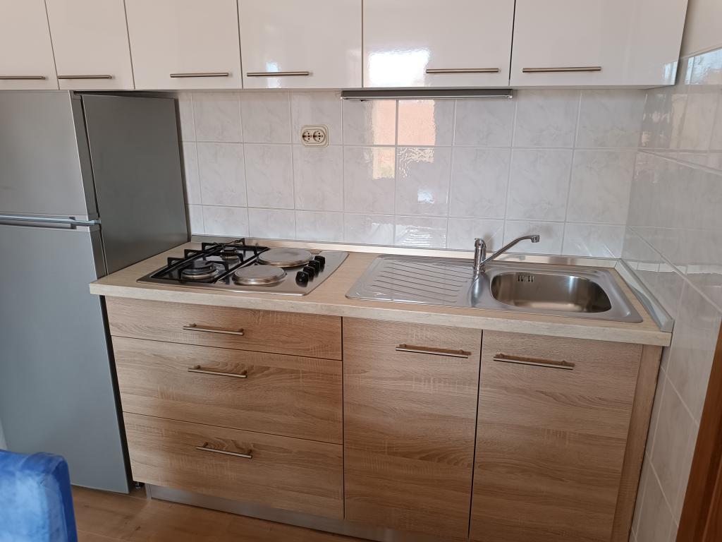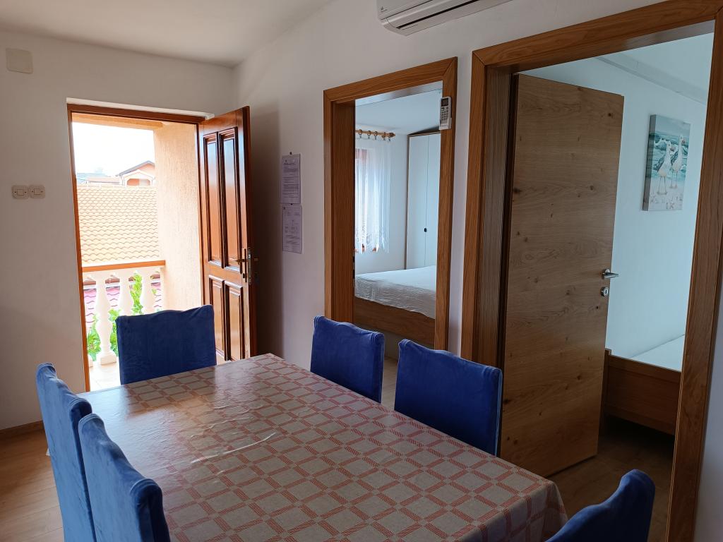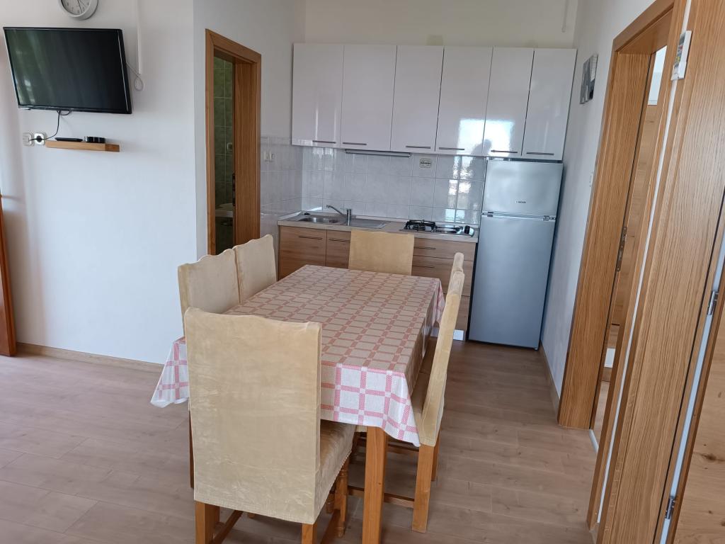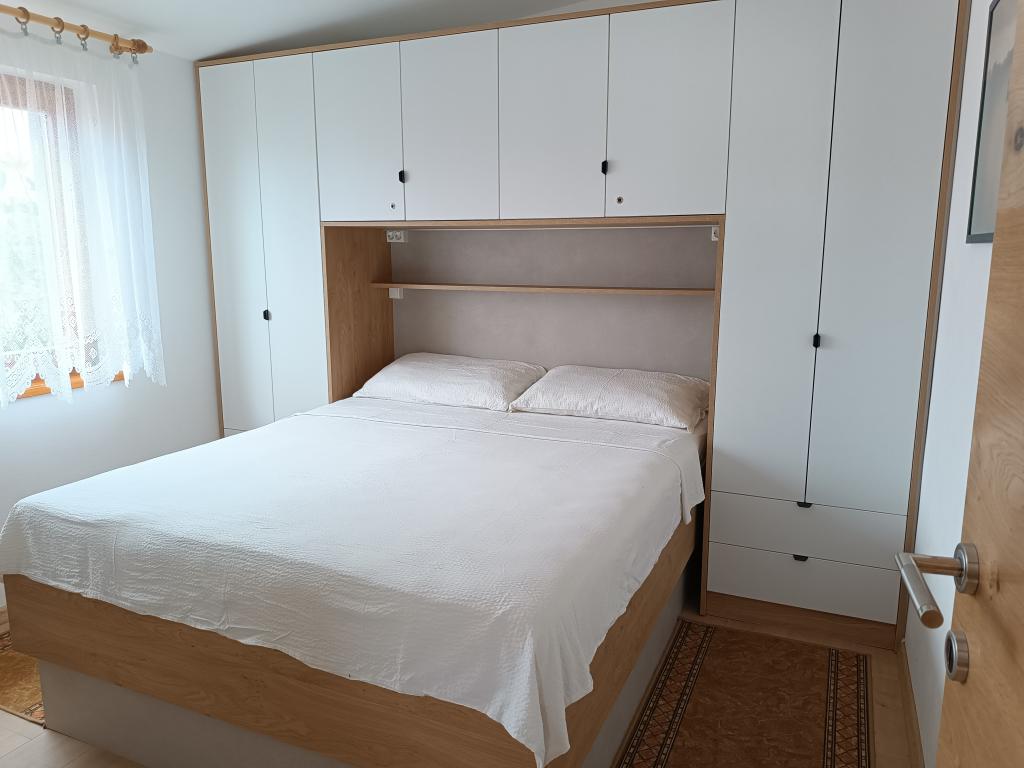 Vi udlejer tre identiske større lejligheder med aircondition til 4 personer, og en mindre lejlighed til to personer. En større er i stueetagen til venstre og to på første sal. Den mindre er i stueetagen til højre. Større lejligheder har to soveværelser og en stue, mens mindre lejligheder har et soveværelse og en stue. Hver lejlighed har en separat indgang og en terrasse på 12 kvadratmeter. I lejlighederne får du alt sengetøj og service til madlavning og servering af mad og drikke. Gæster bedes medbringe egne midler til opvask og aftørring samt håndklæder til badeværelset og alt til personlig hygiejne. Den nærmeste strand (Žitna uvala) ligger 100 m væk Udenfor på stranden er der grus, og i vandet er der sand. Den er velegnet til børn. Der er en lang promenade og cykelsti langs stranden. Der er flere restauranter og en isbar på stranden. Inden for en radius af 150-250 meter er der en frugtbutik, et bageri, flere dagligvarebutikker og butikker med strandudstyr. Vores gade er ikke befærdet. Det bruges kun af sine lejere og gæster. Den er asfalteret og har offentlig belysning.