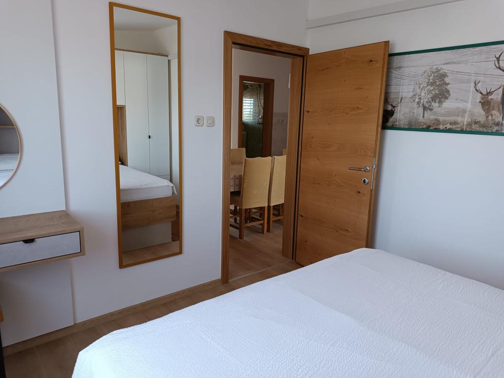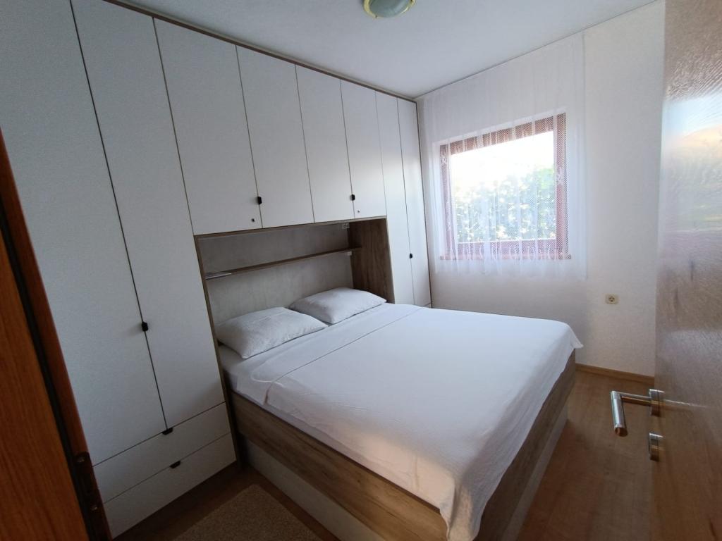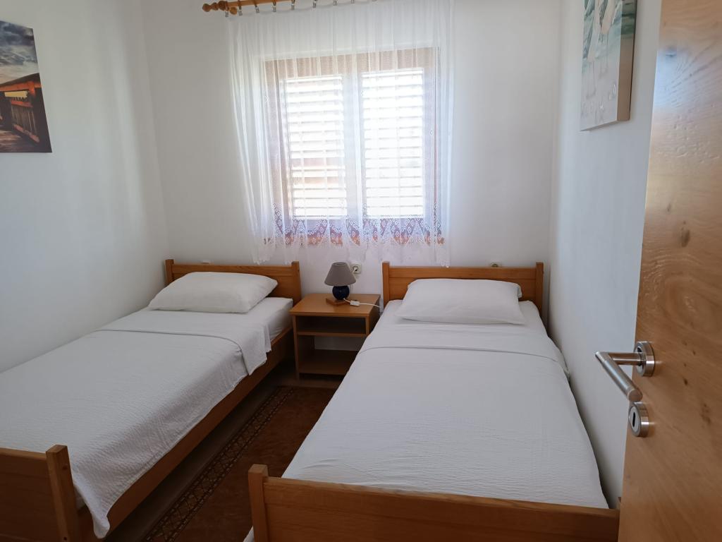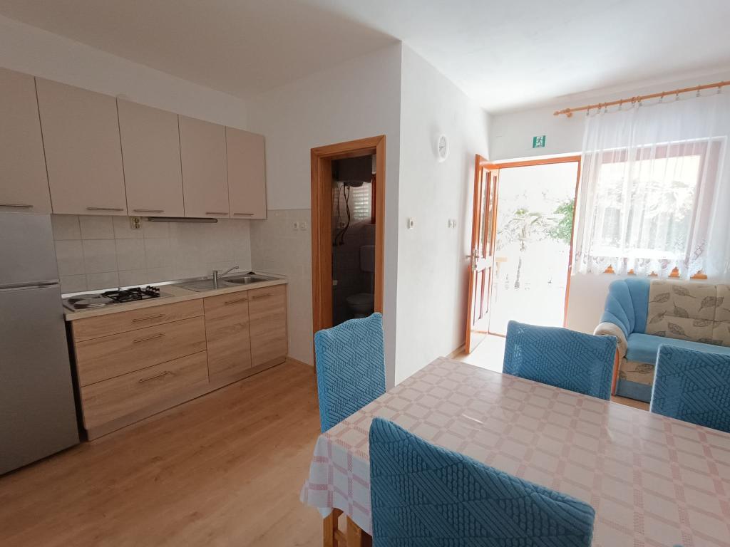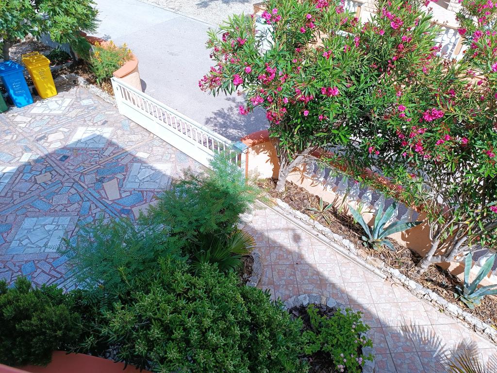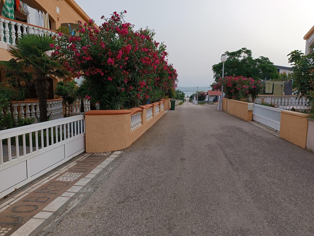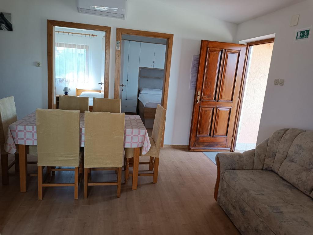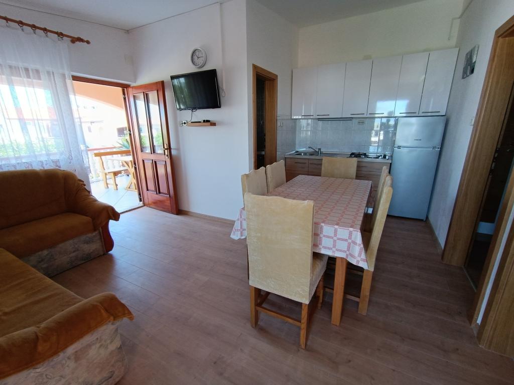 Vi udlejer tre identiske større lejligheder med aircondition til 4 personer, og en mindre lejlighed til to personer. En større er i stueetagen til venstre og to på første sal. Den mindre er i stueetagen til højre. Større lejligheder har to soveværelser og en stue, mens mindre lejligheder har et soveværelse og en stue. Hver lejlighed har en separat indgang og en terrasse på 12 kvadratmeter. I lejlighederne får du alt sengetøj og service til madlavning og servering af mad og drikke. Gæster bedes medbringe egne midler til opvask og aftørring samt håndklæder til badeværelset og alt til personlig hygiejne. Den nærmeste strand (Žitna uvala) ligger 100 m væk Udenfor på stranden er der grus, og i vandet er der sand. Den er velegnet til børn. Der er en lang promenade og cykelsti langs stranden. Der er flere restauranter og en isbar på stranden. Inden for en radius af 150-250 meter er der en frugtbutik, et bageri, flere dagligvarebutikker og butikker med strandudstyr. Vores gade er ikke befærdet. Det bruges kun af sine lejere og gæster. Den er asfalteret og har offentlig belysning.