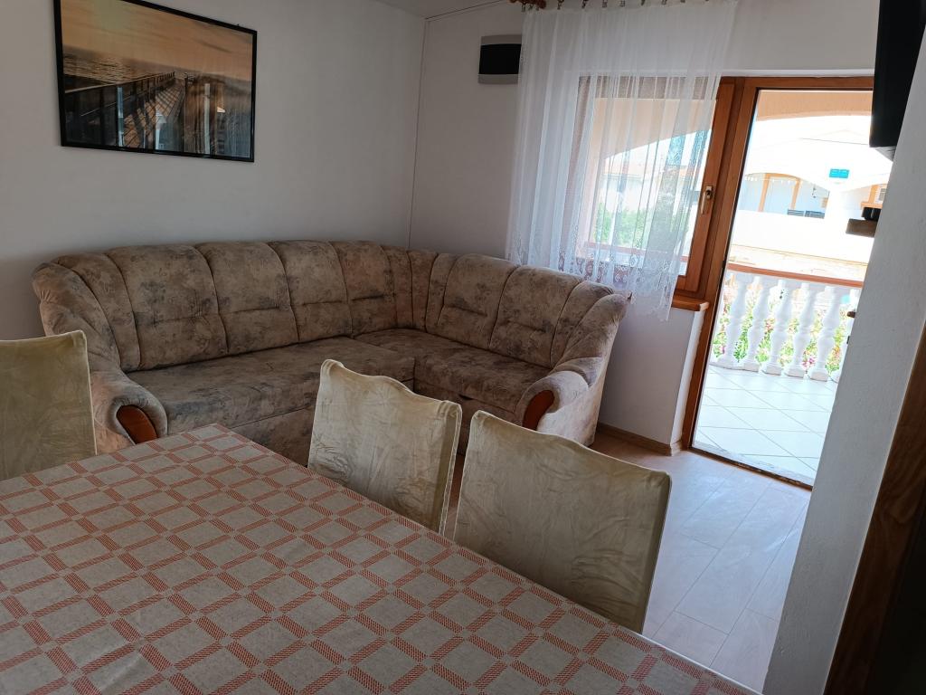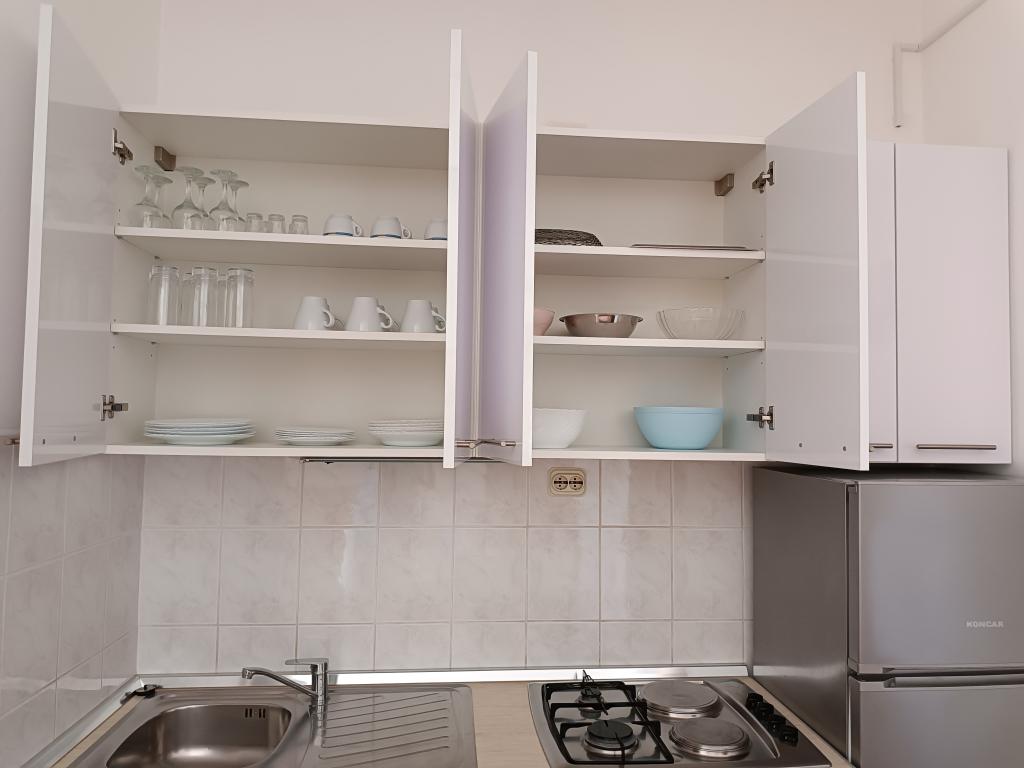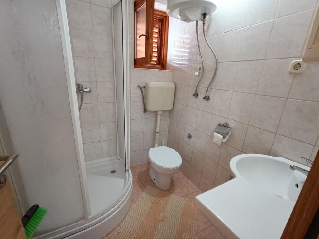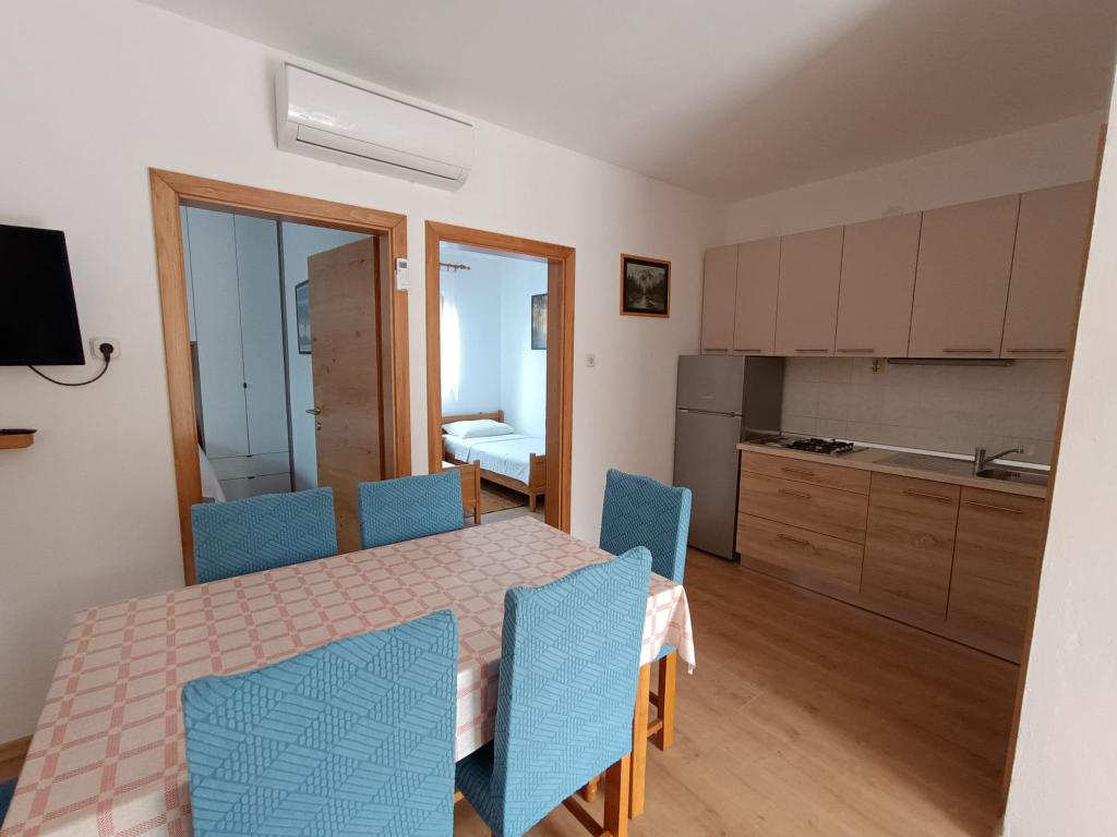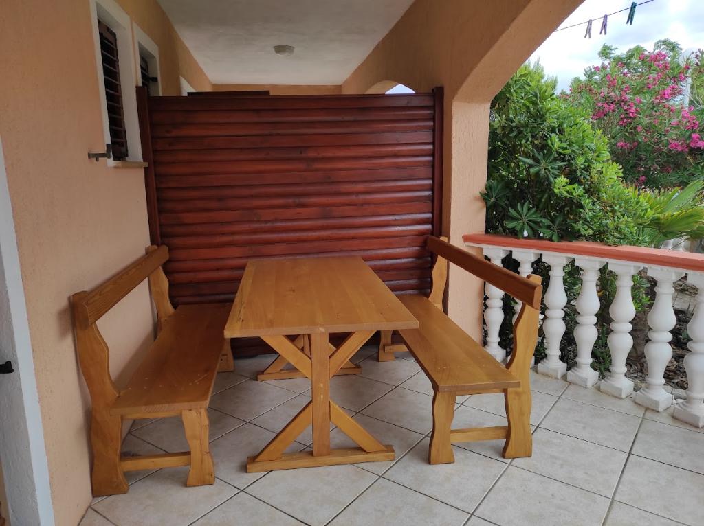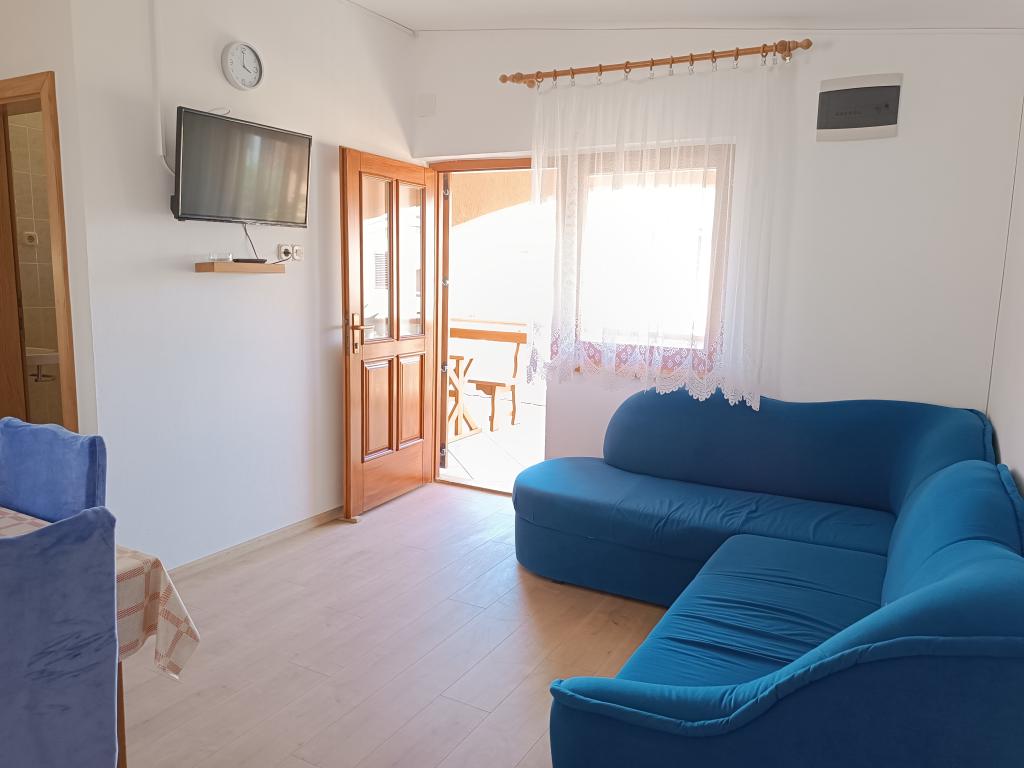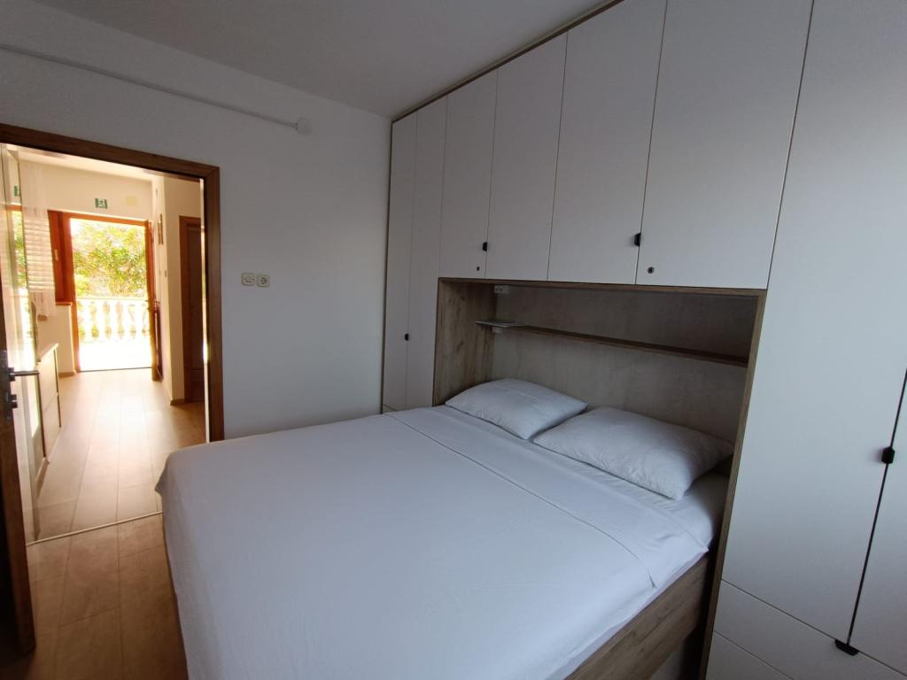 Vi udlejer tre identiske større lejligheder med aircondition til 4 personer, og en mindre lejlighed til to personer. En større er i stueetagen til venstre og to på første sal. Den mindre er i stueetagen til højre. Større lejligheder har to soveværelser og en stue, mens mindre lejligheder har et soveværelse og en stue. Hver lejlighed har en separat indgang og en terrasse på 12 kvadratmeter. I lejlighederne får du alt sengetøj og service til madlavning og servering af mad og drikke. Gæster bedes medbringe egne midler til opvask og aftørring samt håndklæder til badeværelset og alt til personlig hygiejne. Den nærmeste strand (Žitna uvala) ligger 100 m væk Udenfor på stranden er der grus, og i vandet er der sand. Den er velegnet til børn. Der er en lang promenade og cykelsti langs stranden. Der er flere restauranter og en isbar på stranden. Inden for en radius af 150-250 meter er der en frugtbutik, et bageri, flere dagligvarebutikker og butikker med strandudstyr. Vores gade er ikke befærdet. Det bruges kun af sine lejere og gæster. Den er asfalteret og har offentlig belysning.