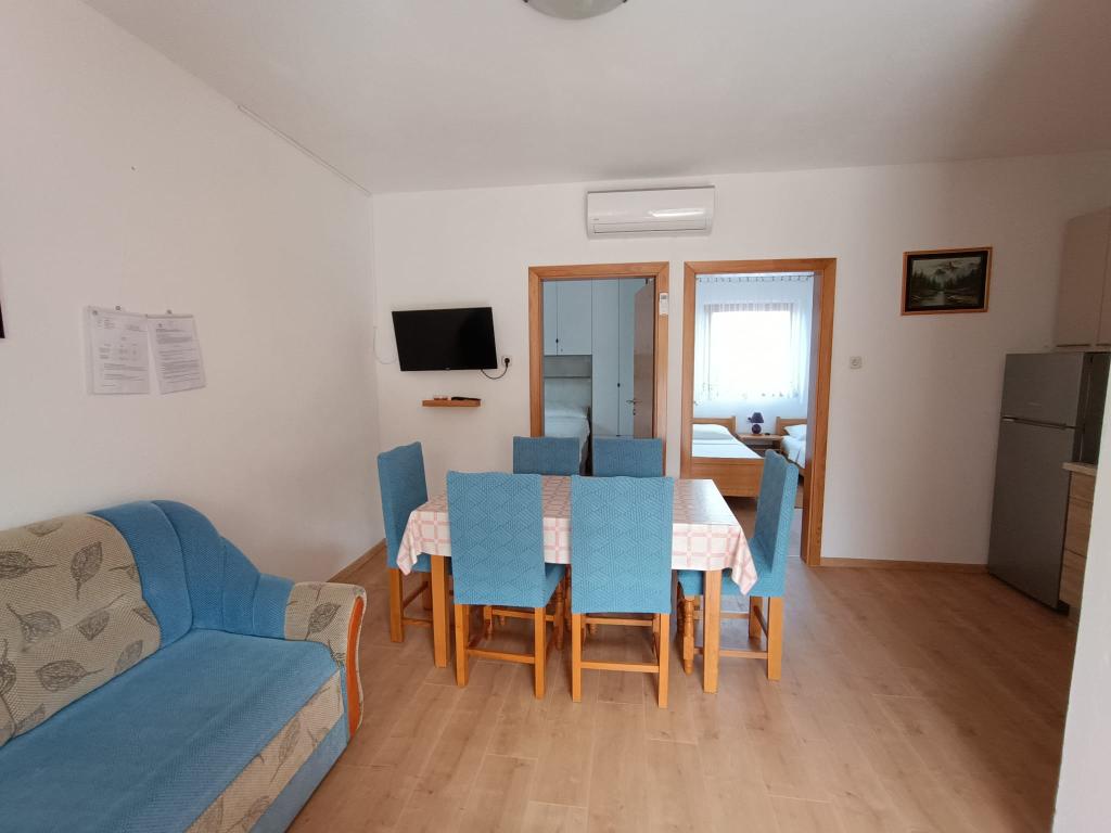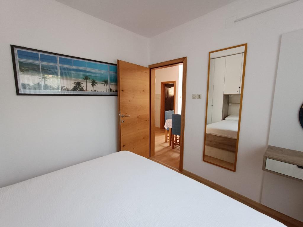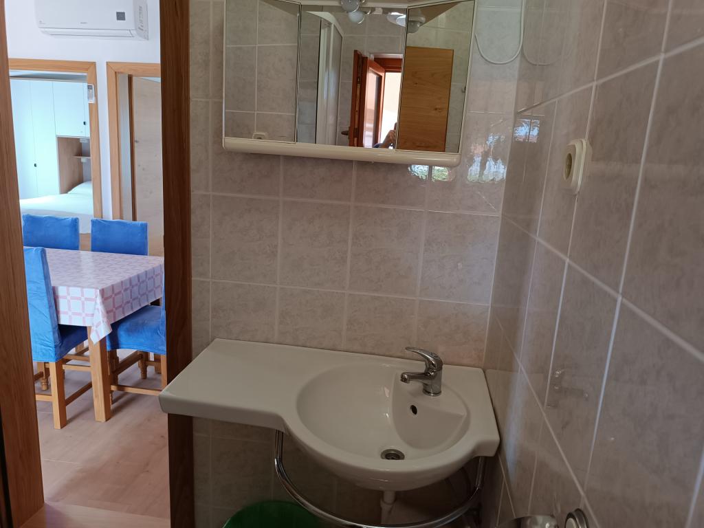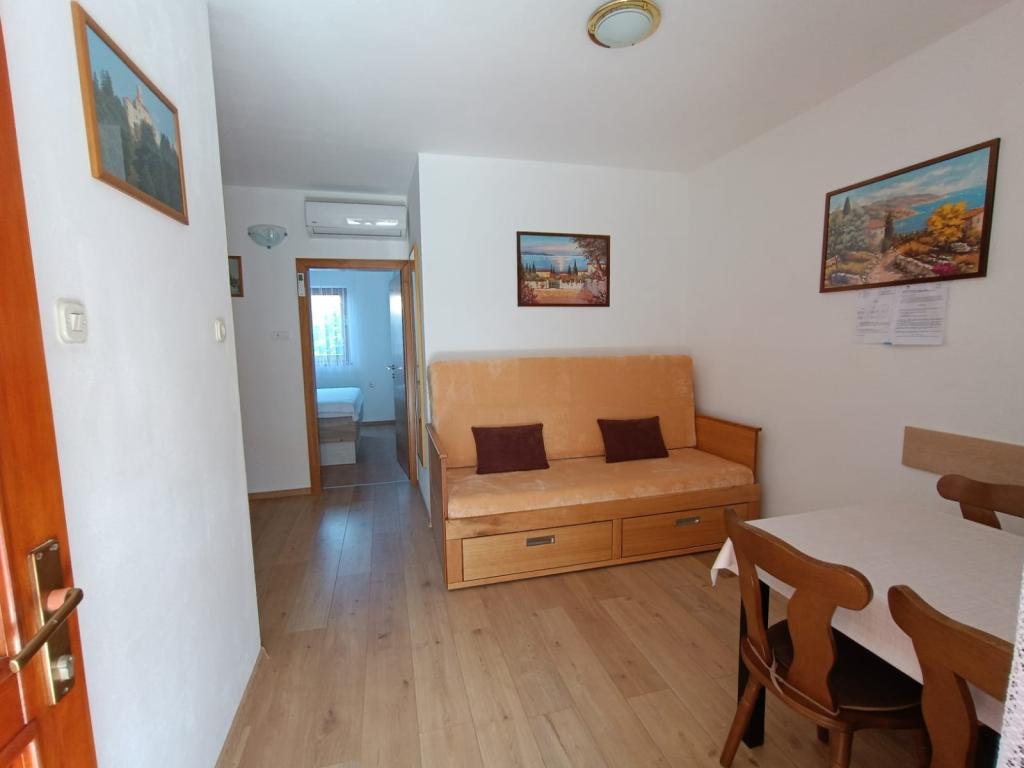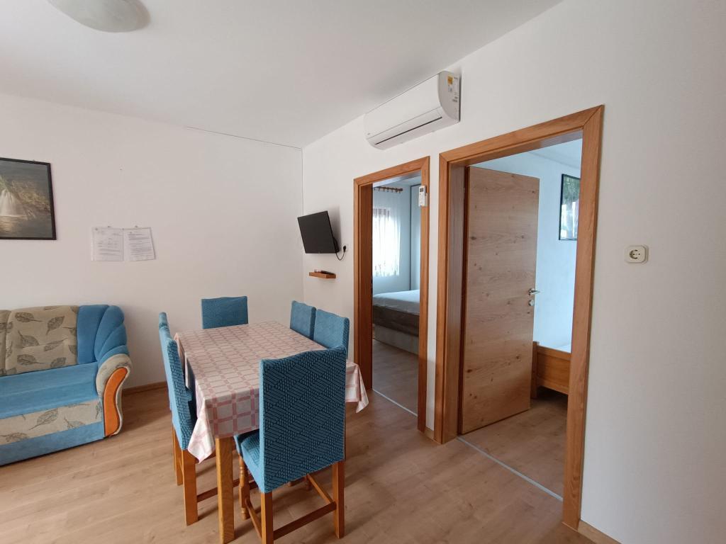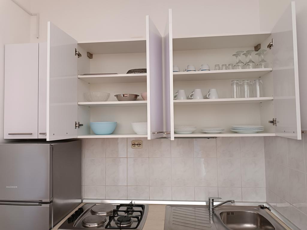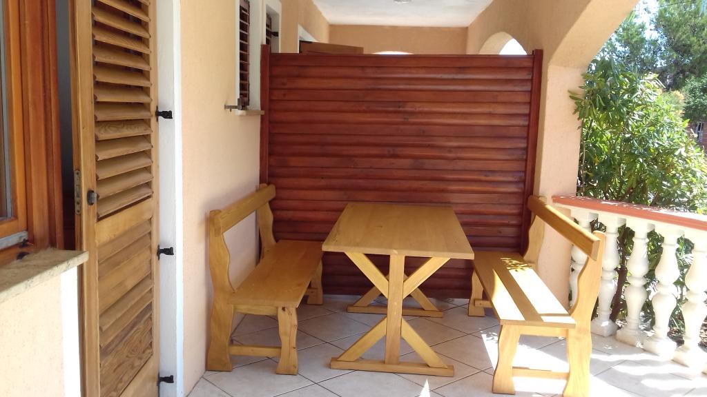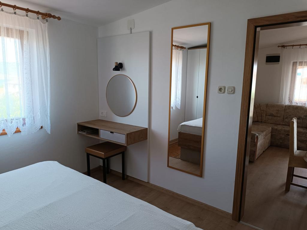Vi udlejer tre identiske større lejligheder med aircondition til 4 personer, og en mindre lejlighed til to personer. En større er i stueetagen til venstre og to på første sal. Den mindre er i stueetagen til højre. Større lejligheder har to soveværelser og en stue, mens mindre lejligheder har et soveværelse og en stue. Hver lejlighed har en separat indgang og en terrasse på 12 kvadratmeter. I lejlighederne får du alt sengetøj og service til madlavning og servering af mad og drikke. Gæster bedes medbringe egne midler til opvask og aftørring samt håndklæder til badeværelset og alt til personlig hygiejne. Den nærmeste strand (Žitna uvala) ligger 100 m væk Udenfor på stranden er der grus, og i vandet er der sand. Den er velegnet til børn. Der er en lang promenade og cykelsti langs stranden. Der er flere restauranter og en isbar på stranden. Inden for en radius af 150-250 meter er der en frugtbutik, et bageri, flere dagligvarebutikker og butikker med strandudstyr. Vores gade er ikke befærdet. Det bruges kun af sine lejere og gæster. Den er asfalteret og har offentlig belysning.
